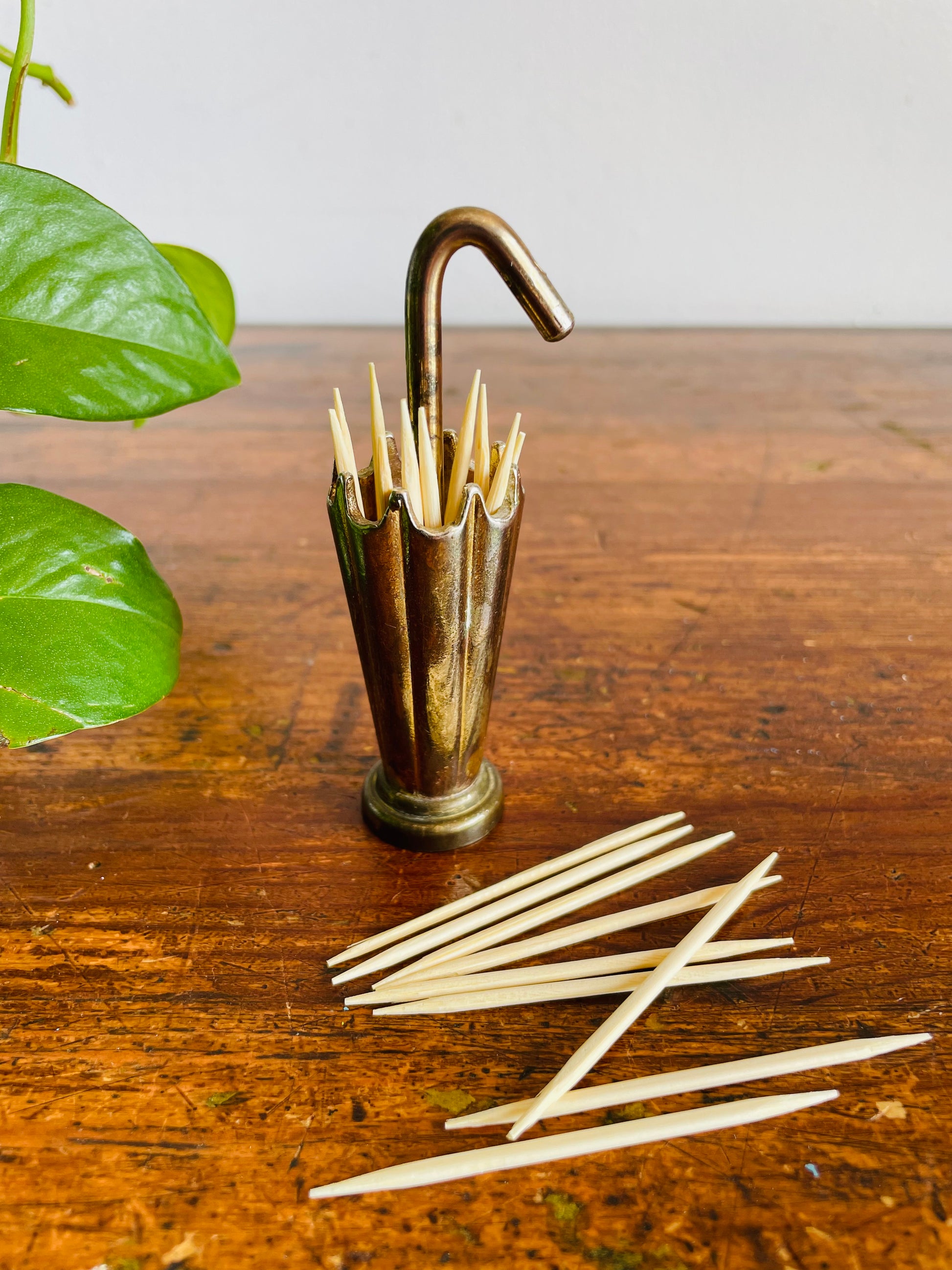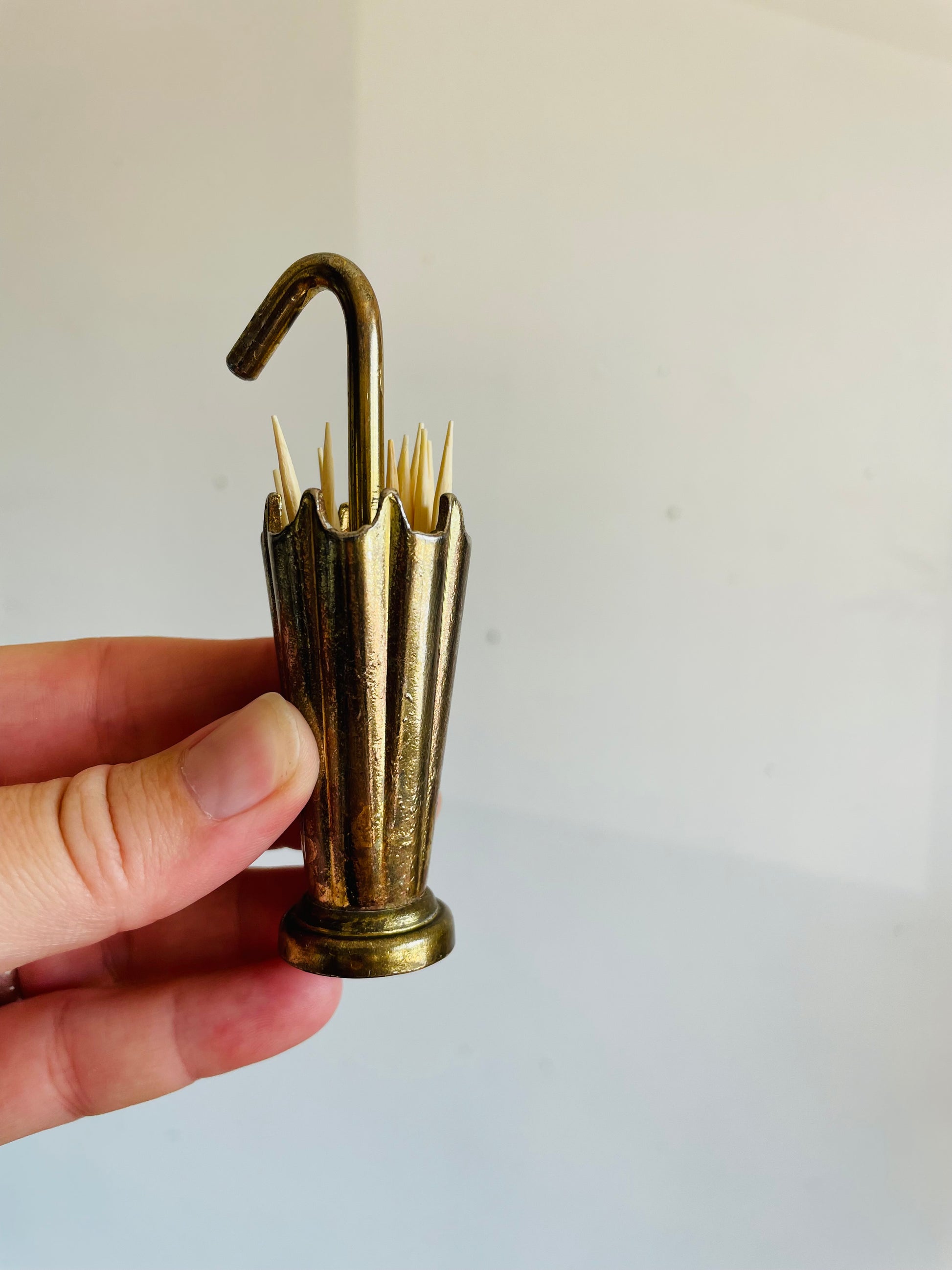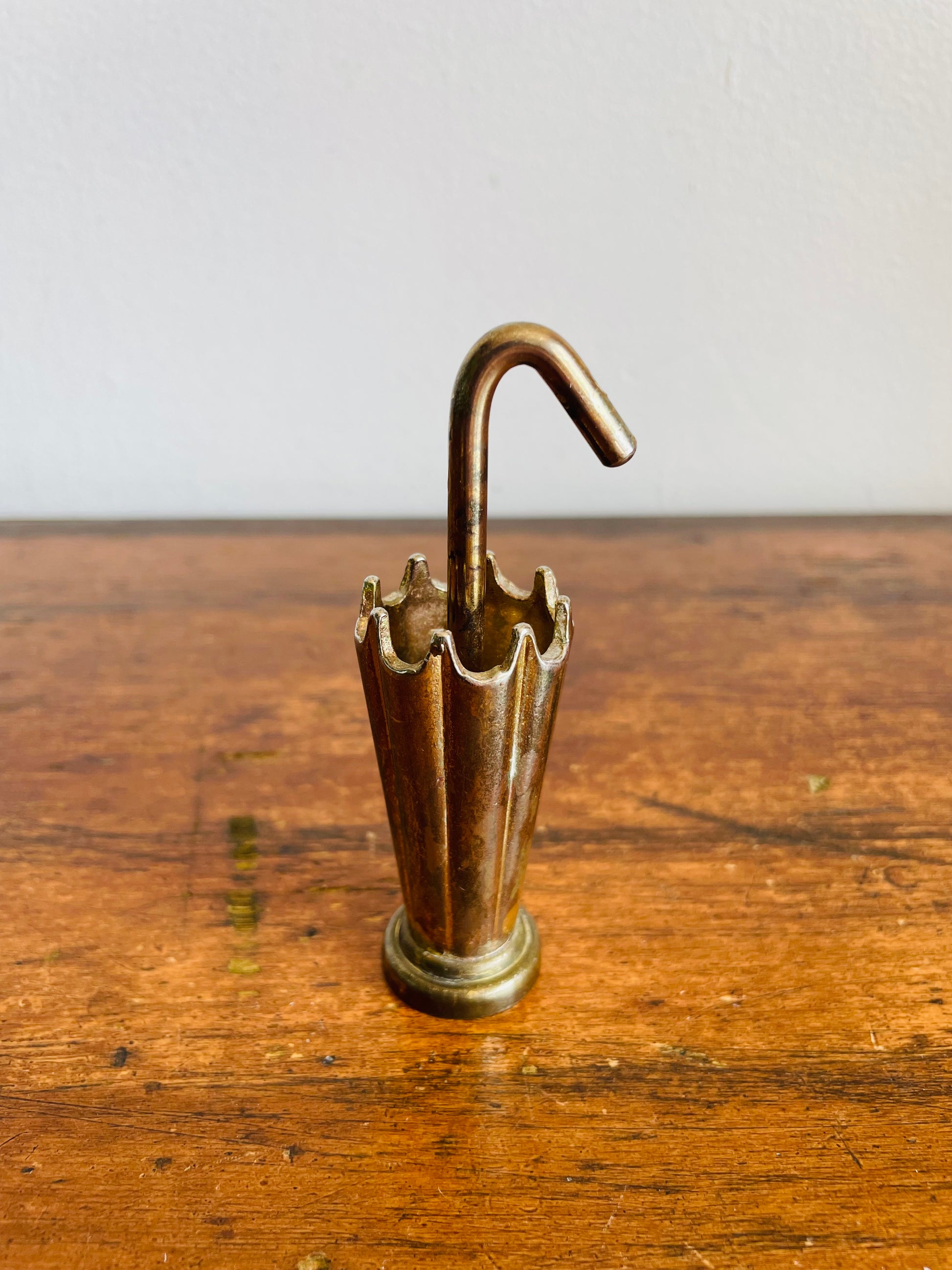 Vintage Solid Brass Umbrella Toothpick or Match Holder