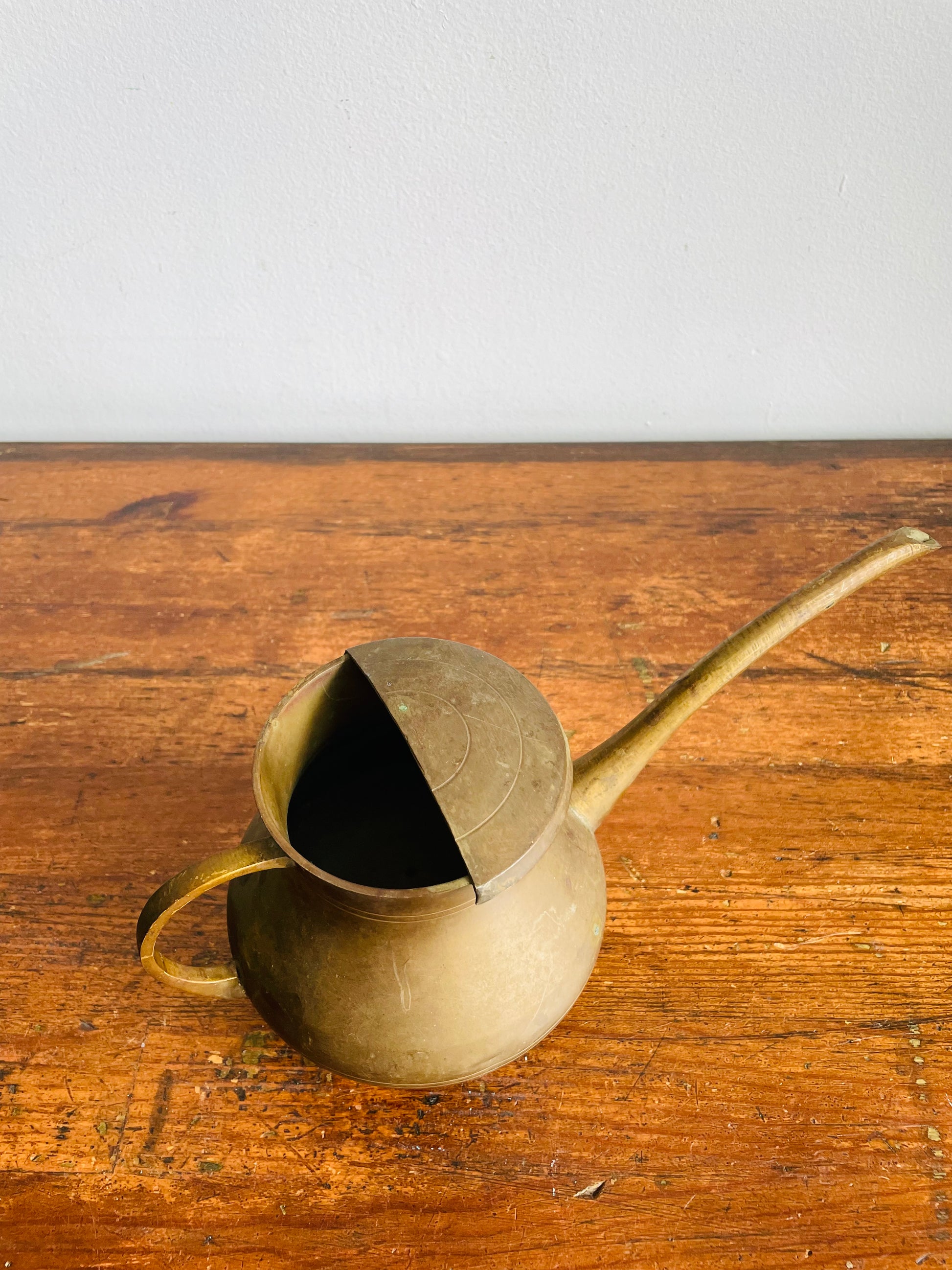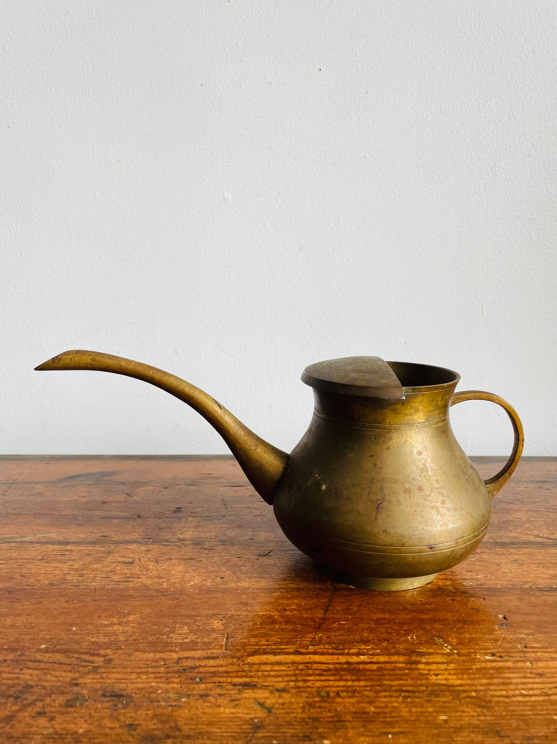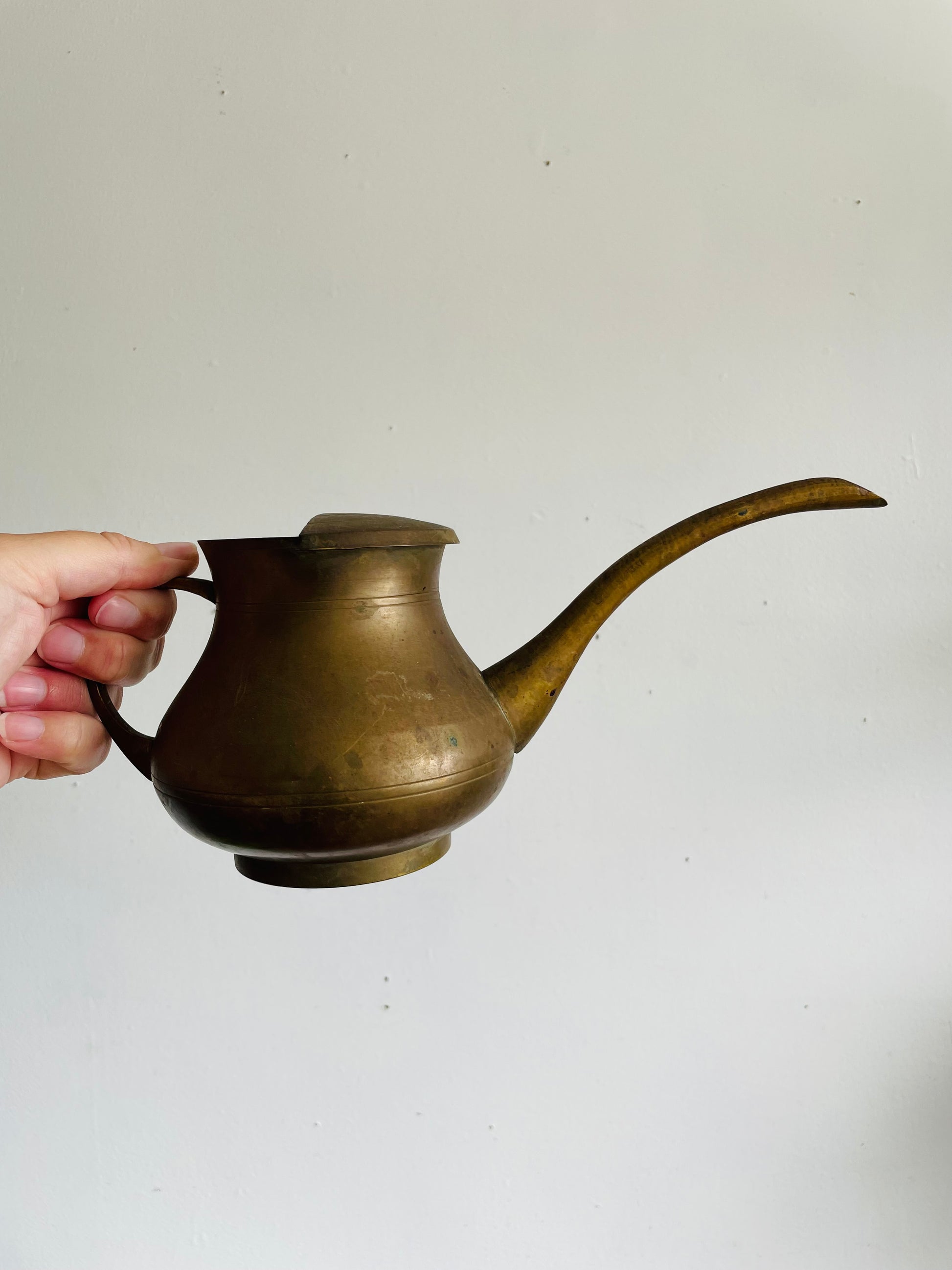 Vintage Solid Brass Watering Can with Long Spout & Curved Handle - Made in India