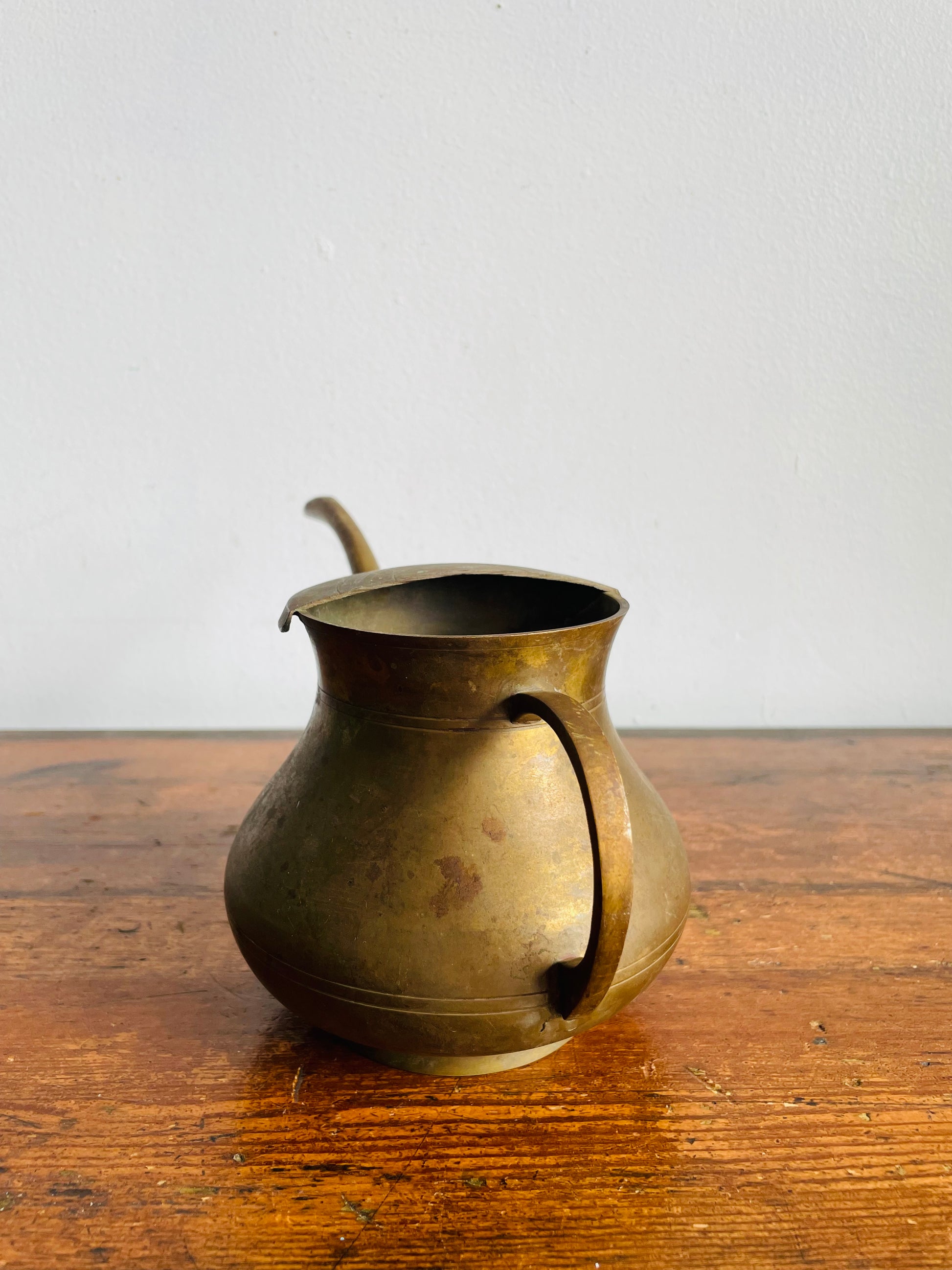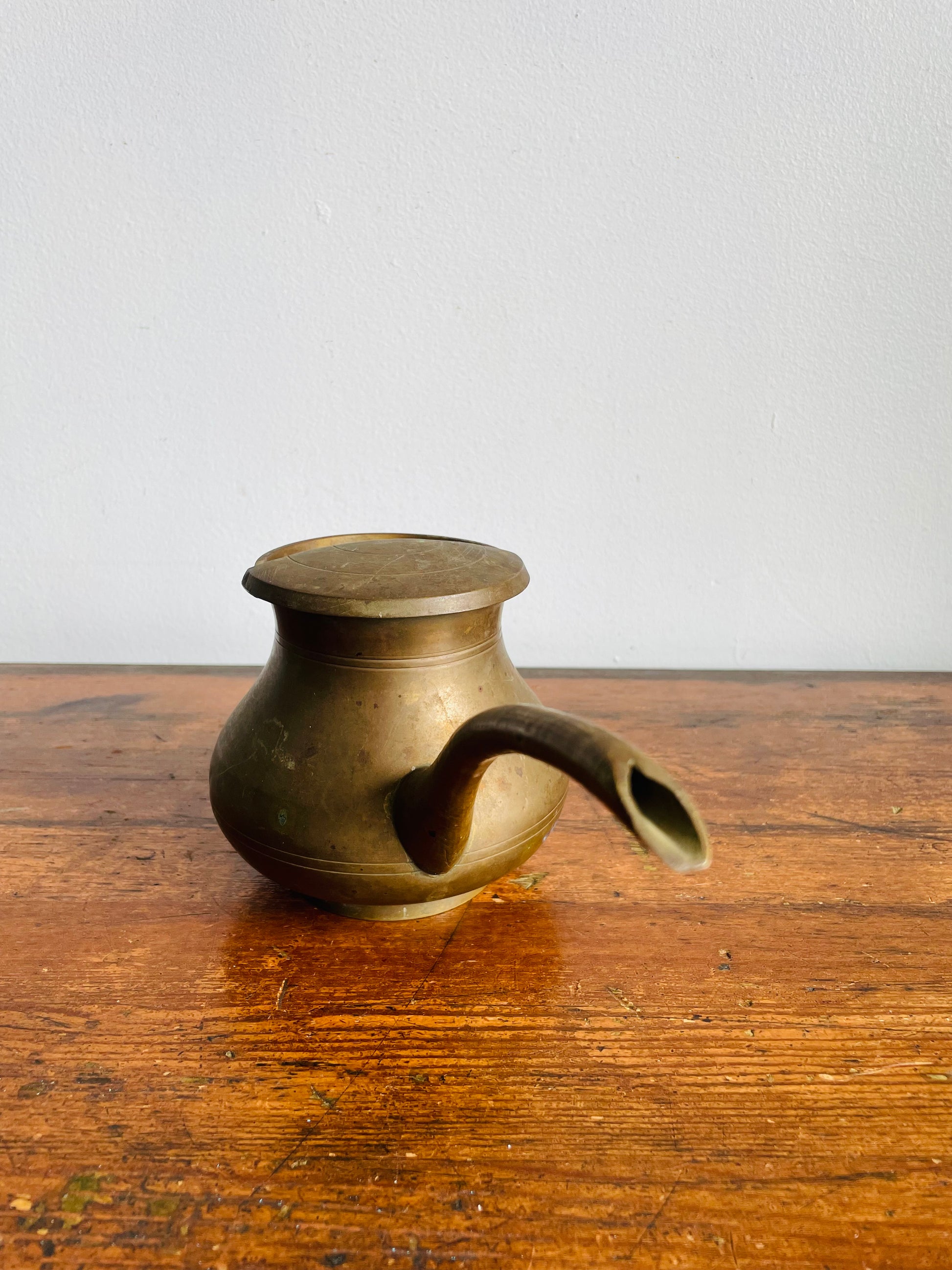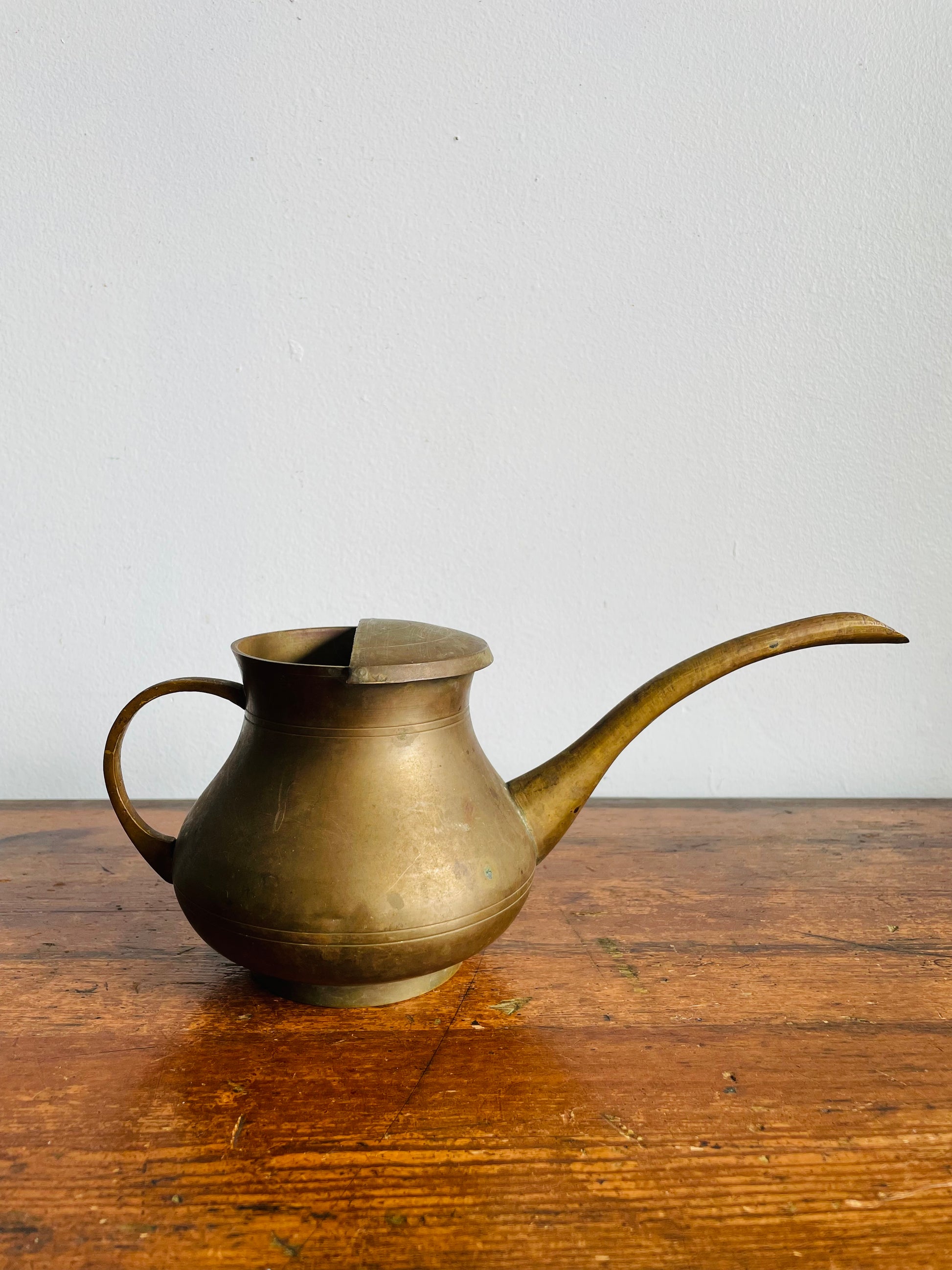 Vintage Solid Brass Watering Can with Long Spout & Curved Handle - Made in India