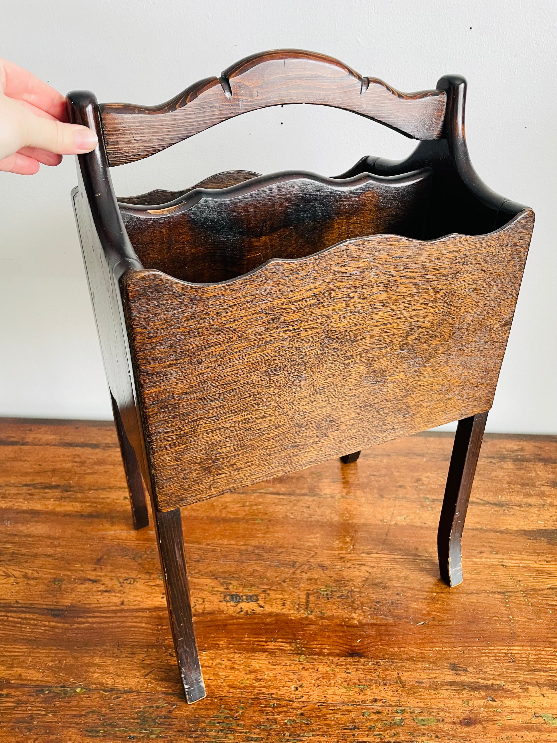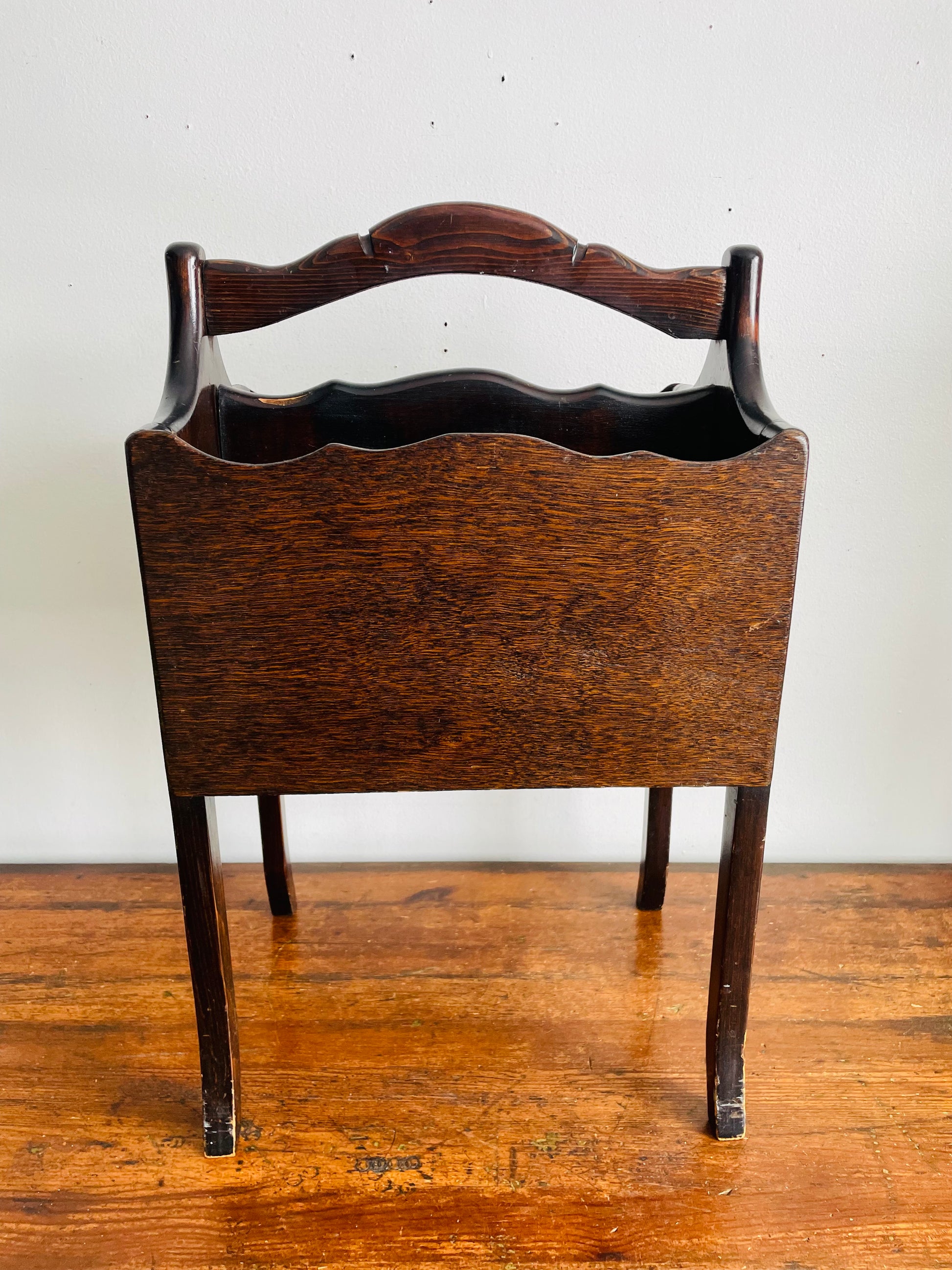 Vintage Standing Wood Magazine / Newspaper / Sheet Music / Book Rack Holder with Handle - Also Great for Knitting Supplies! - No Shipping