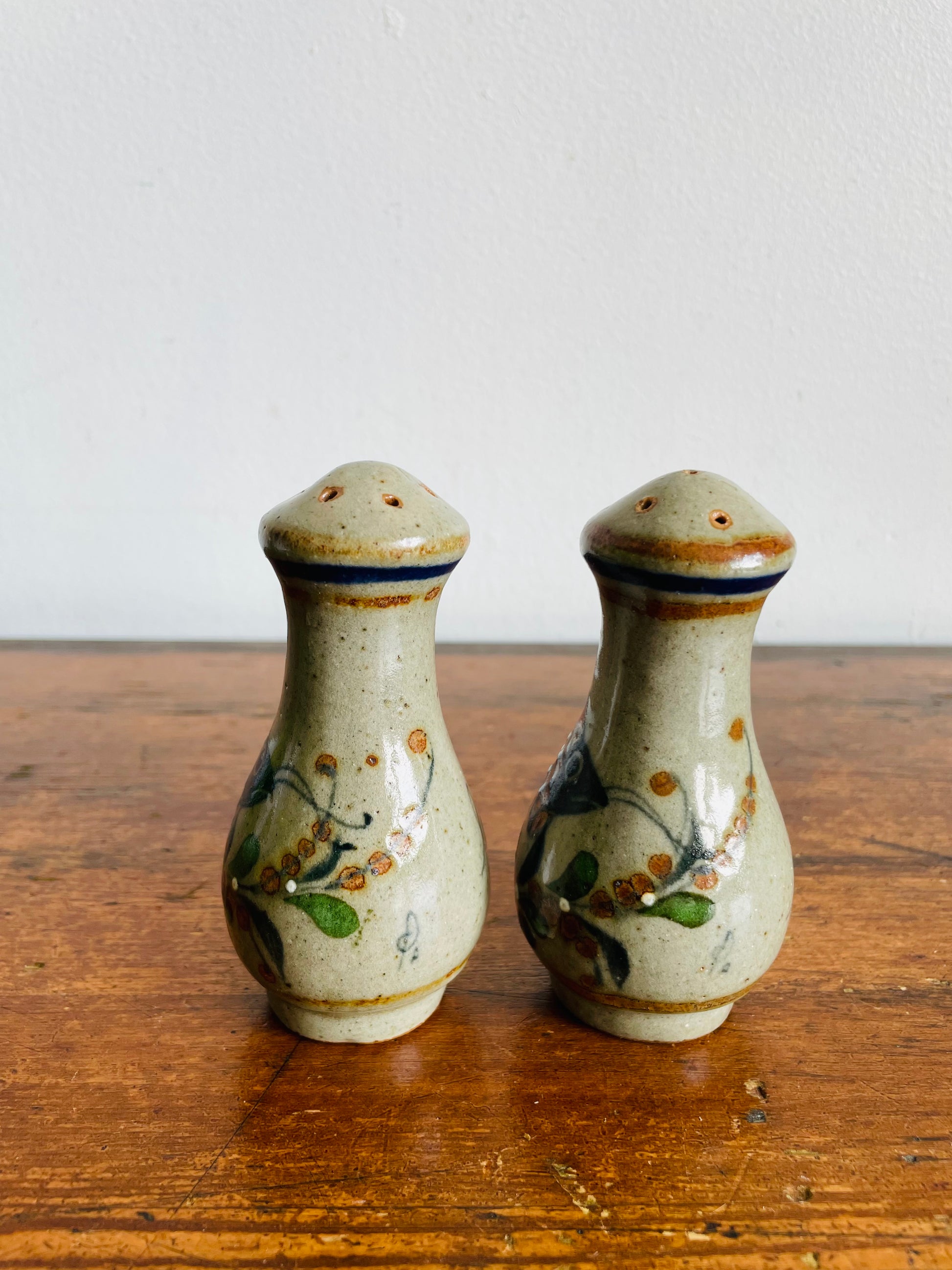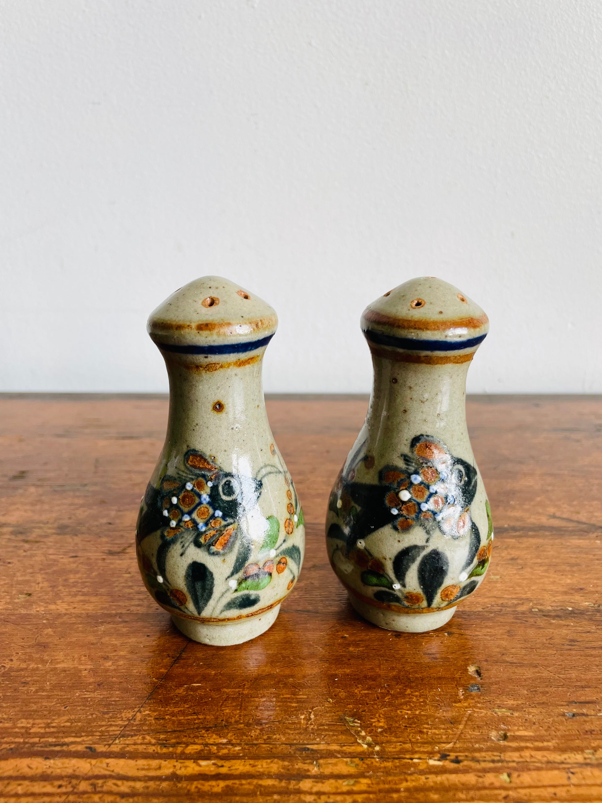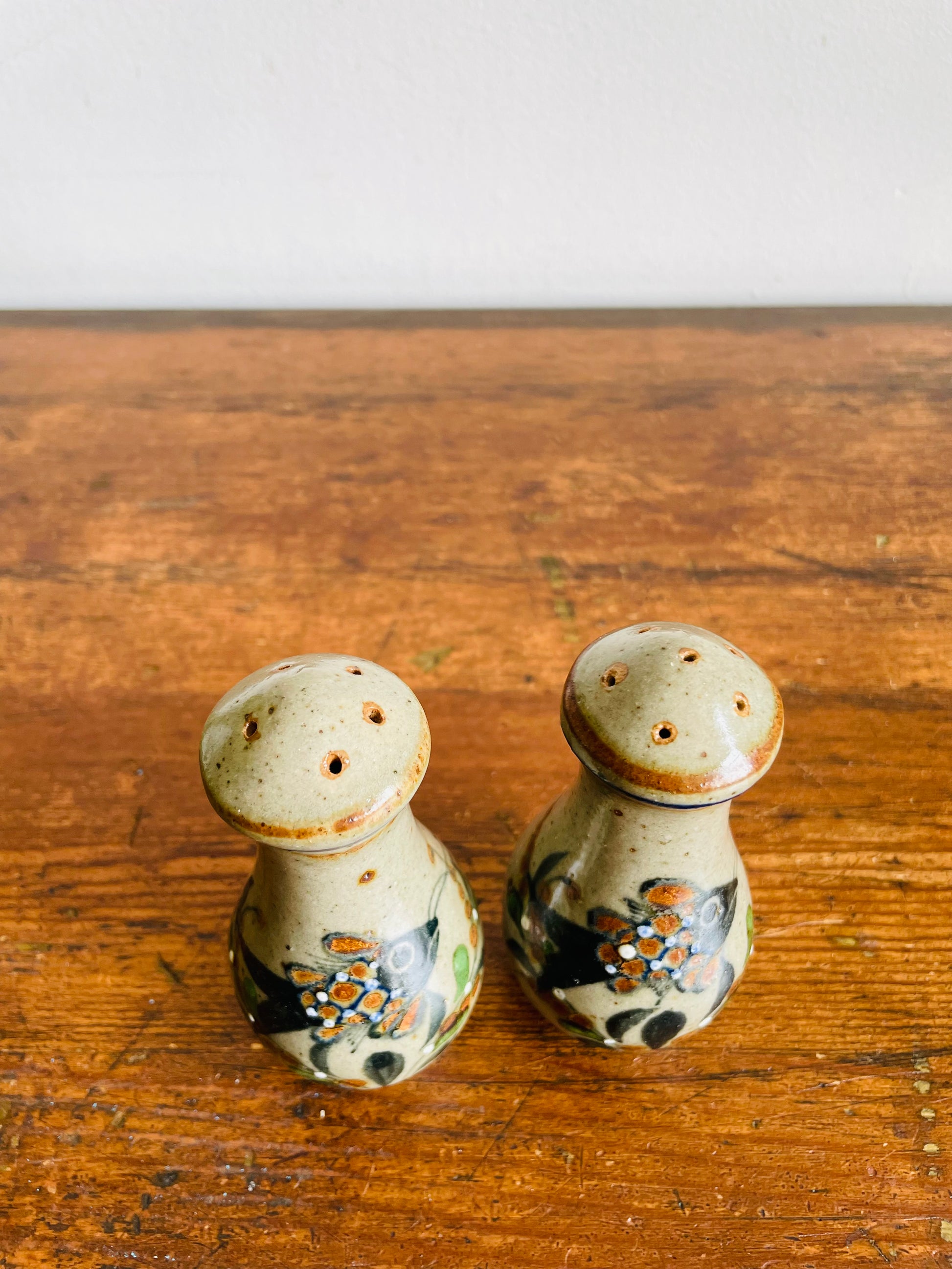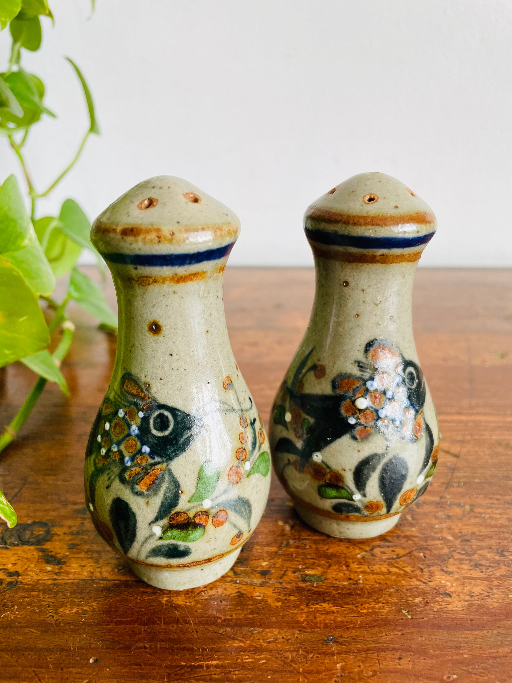 Vintage Tonala Mexican Pottery Salt & Pepper Shakers with Fish Design - Set of 2