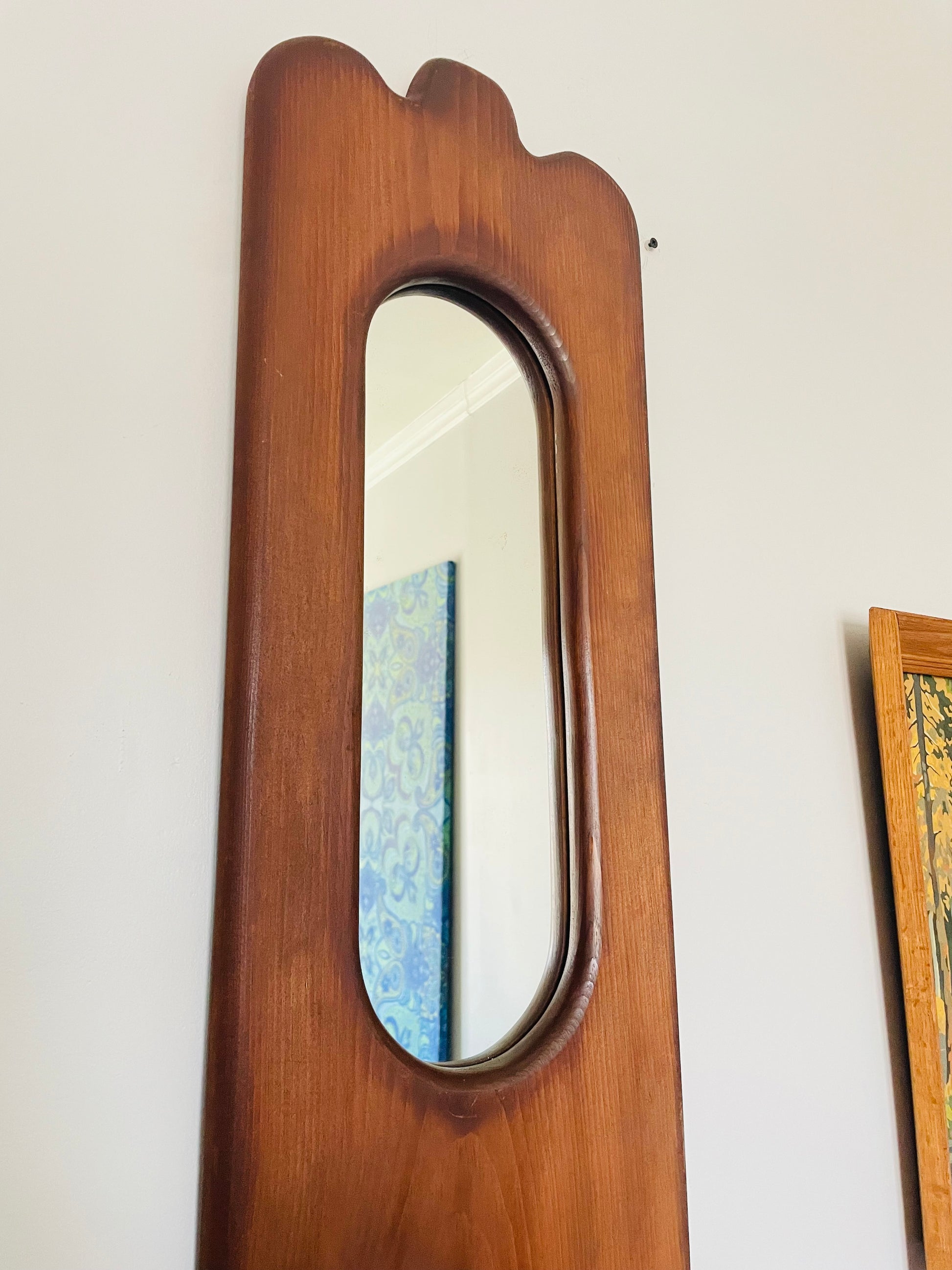 Vintage Organic Wavy Shaped Wood Mirror with Two Shelf Ledges - 3.5 Feet Long - No Shipping