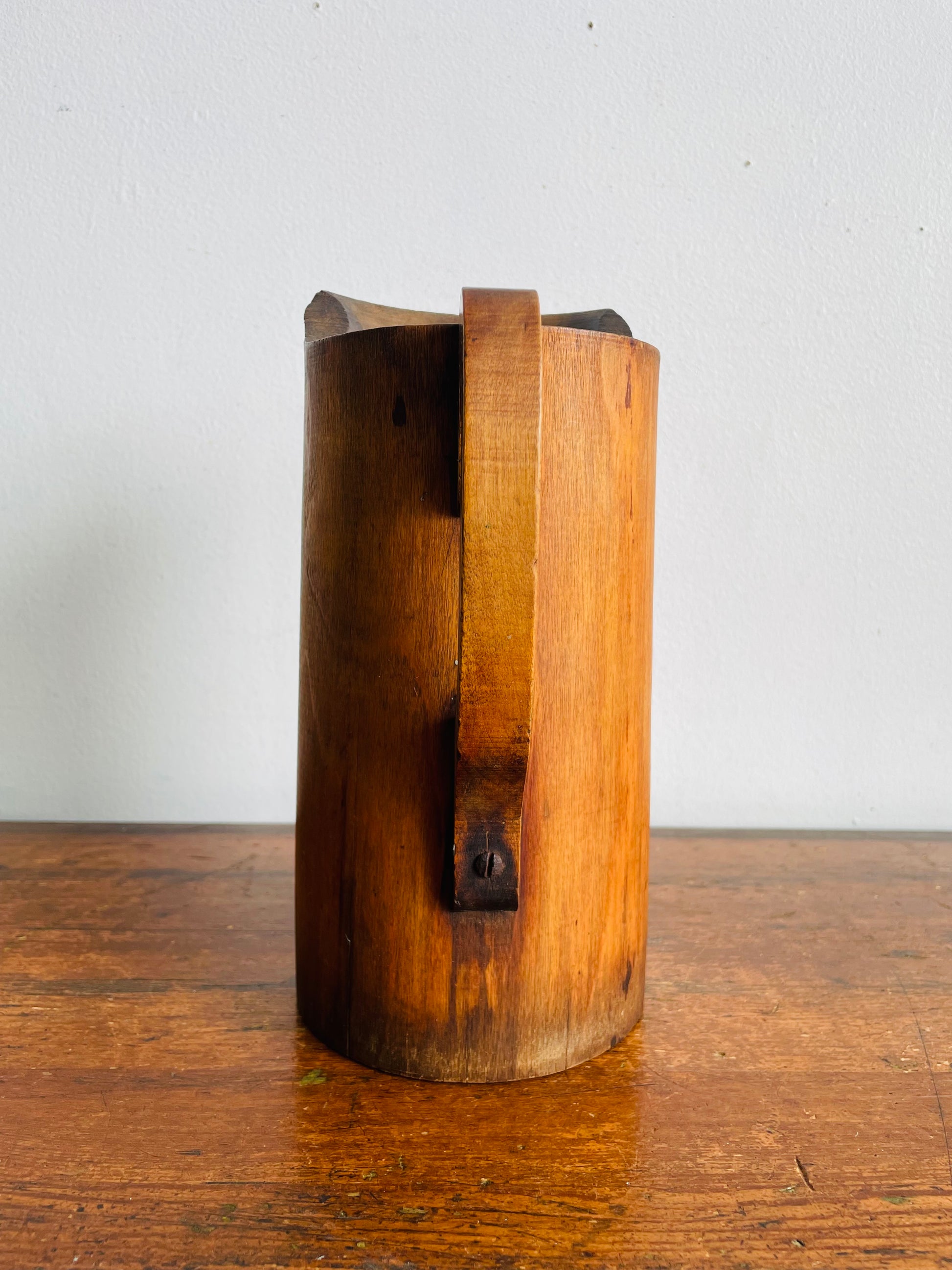 Vintage Wood Quart Treen Noggin Pitcher Water Jug with Handle - Newmarket, Ontario, Canada - Hollowed Out Tree Trunk