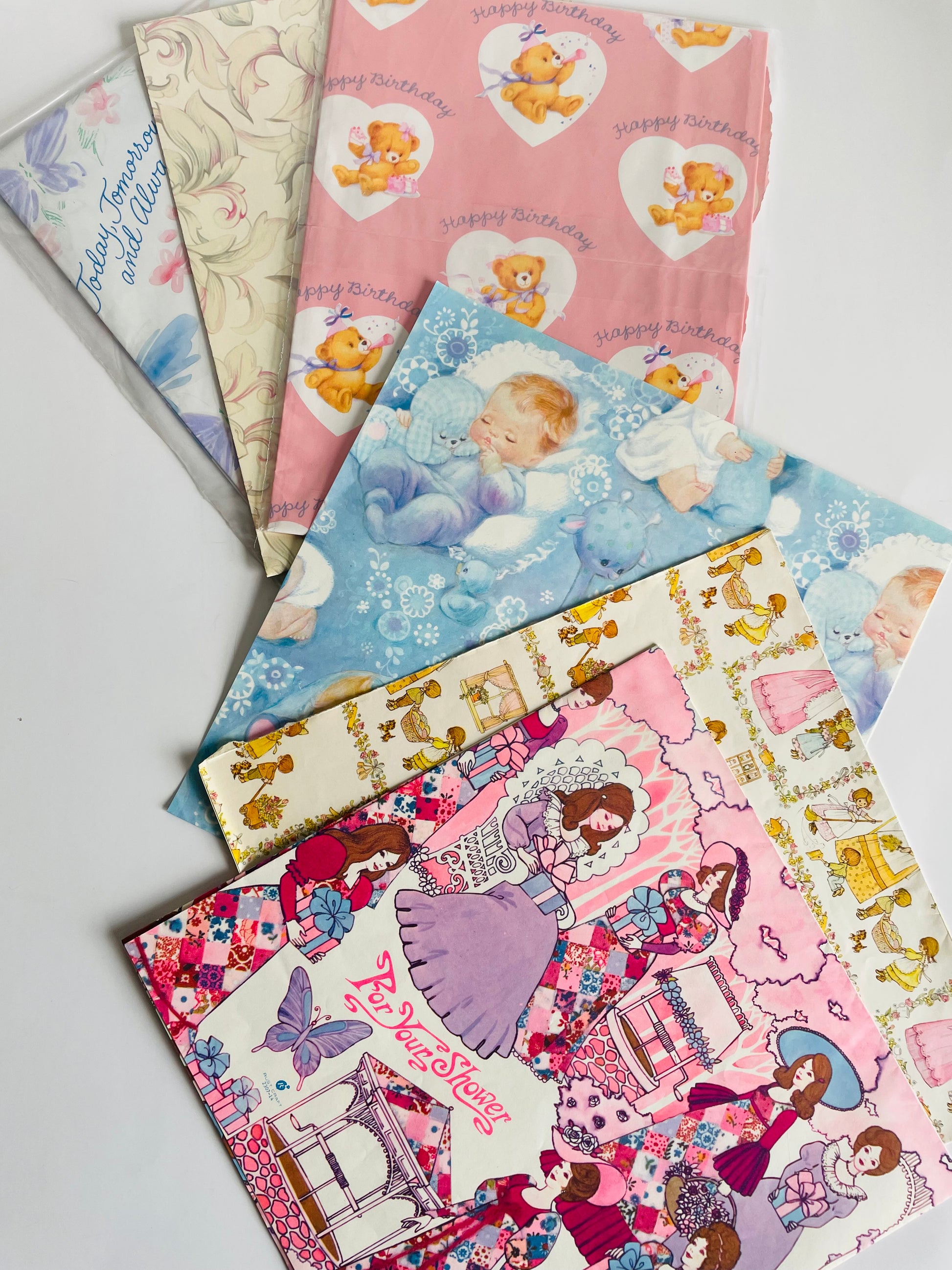 Vintage Wrapping Paper / Gift Wrap Bundle - Scrapbooking, Collage Art, DIY, Crafts, Etc. - Pastels / Children / Pink Theme