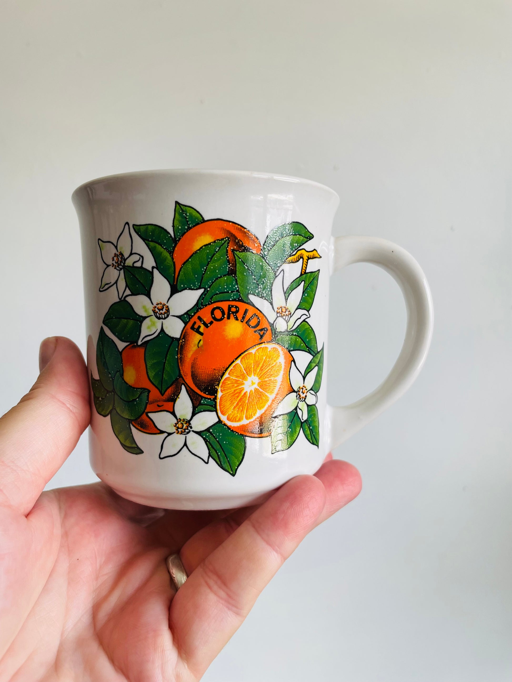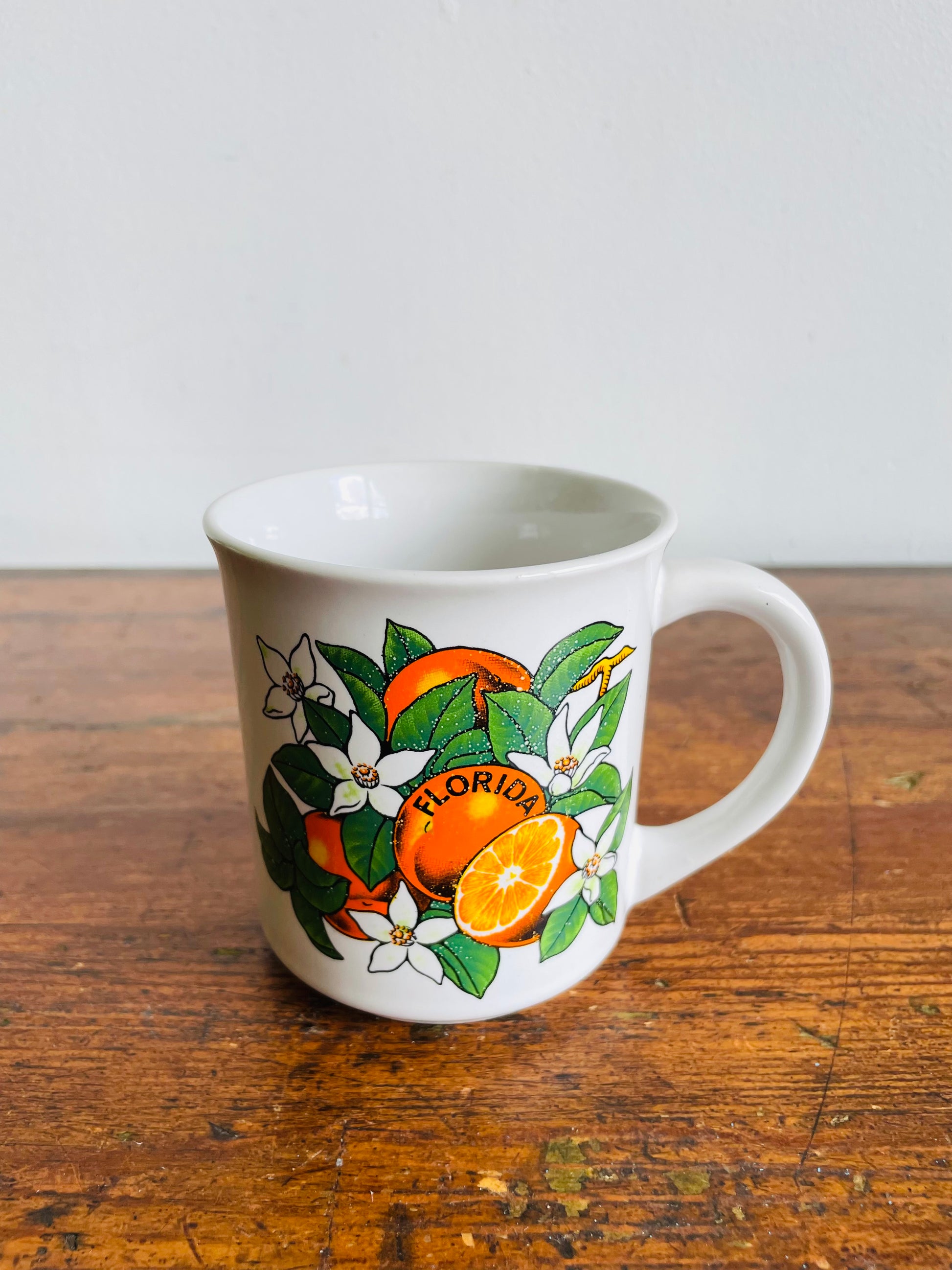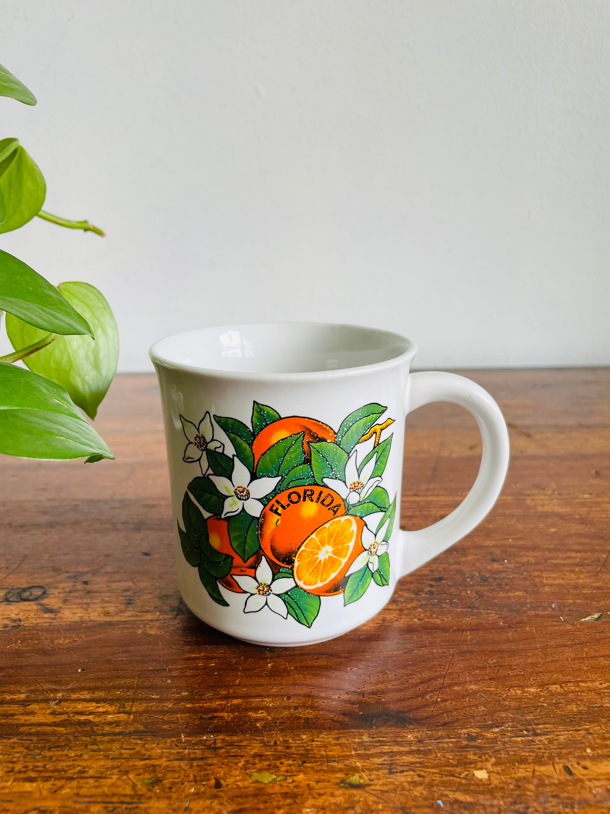 White Florida Mug with Orange Fruit Design - Made in Japan
