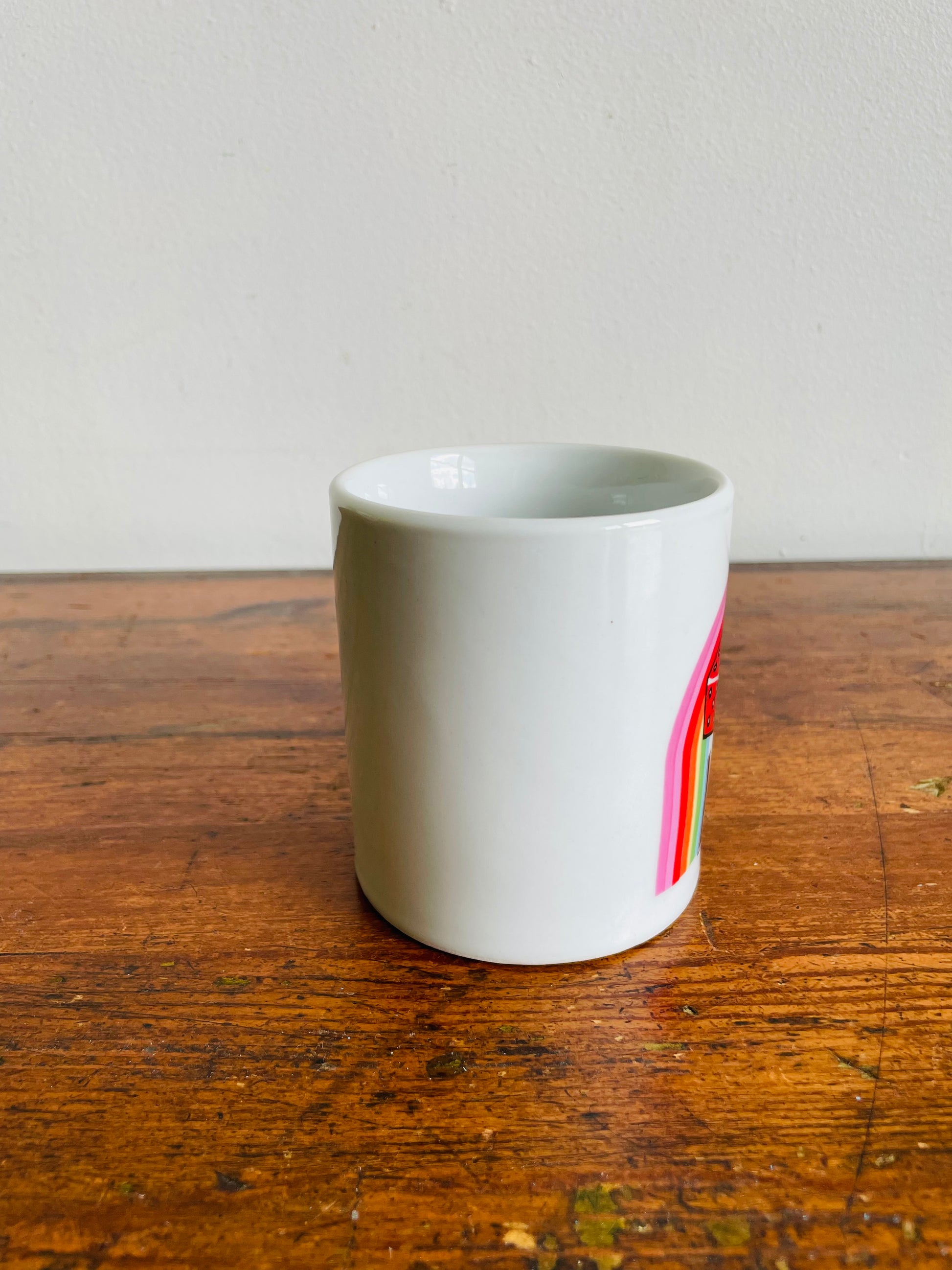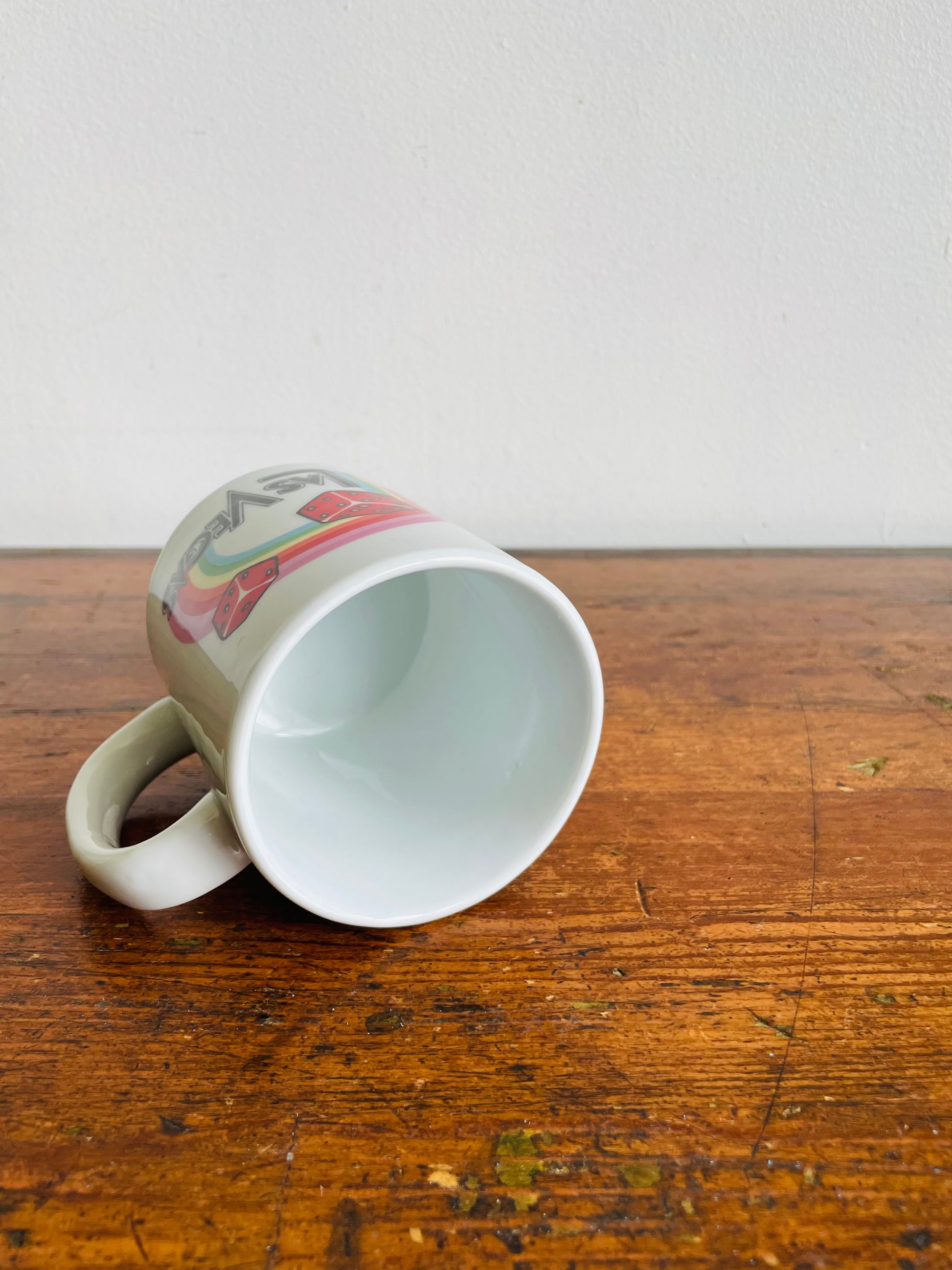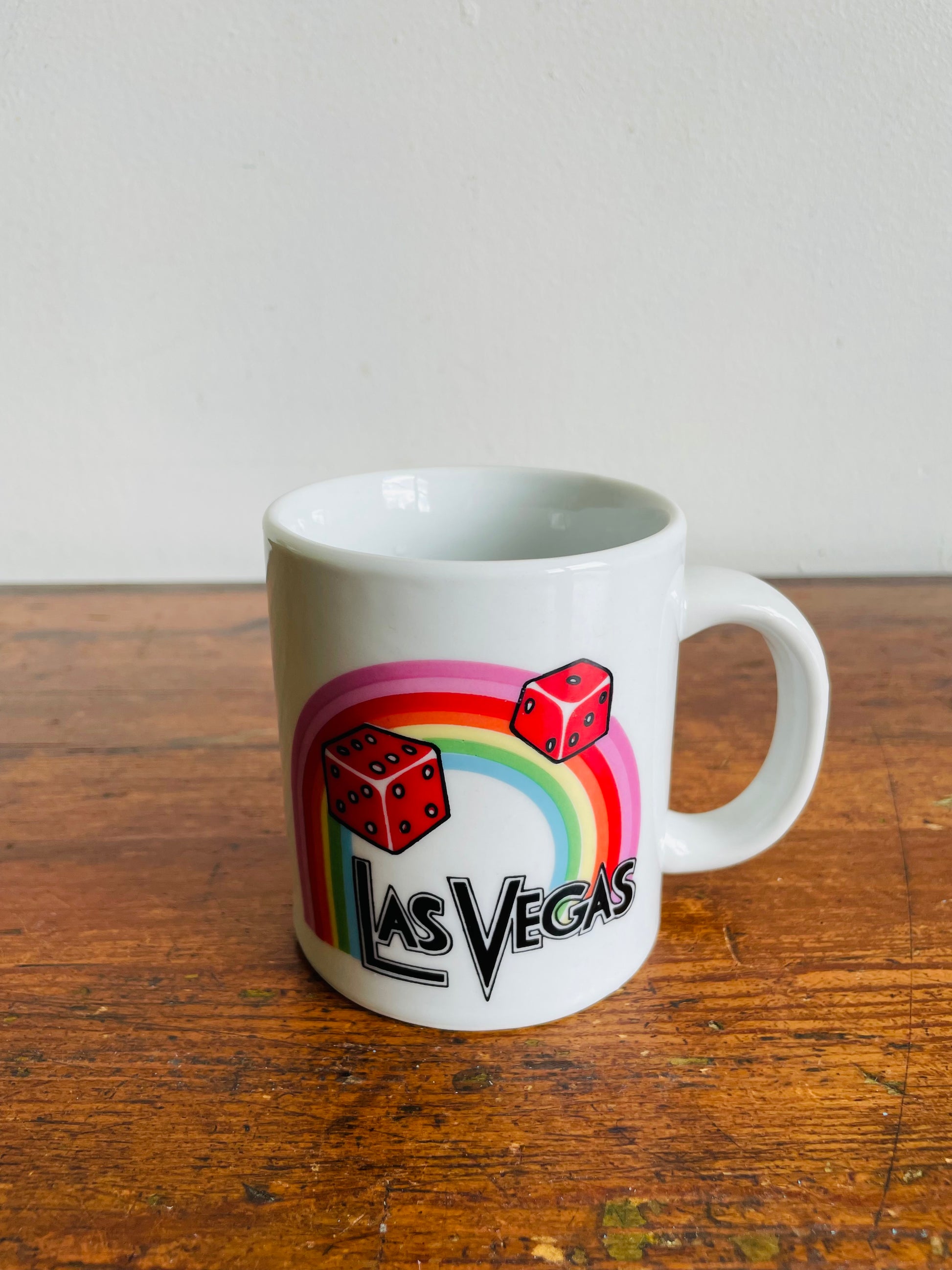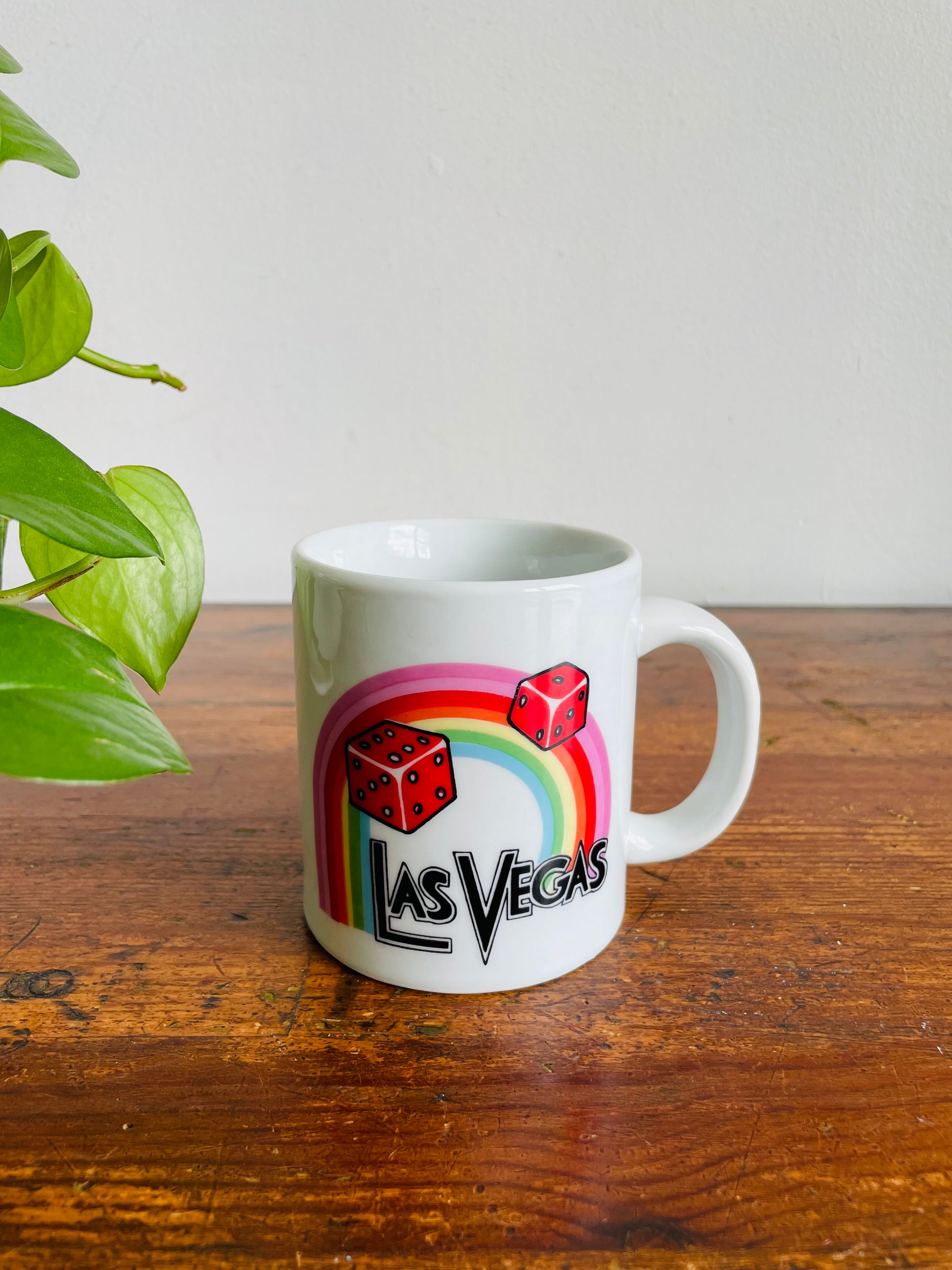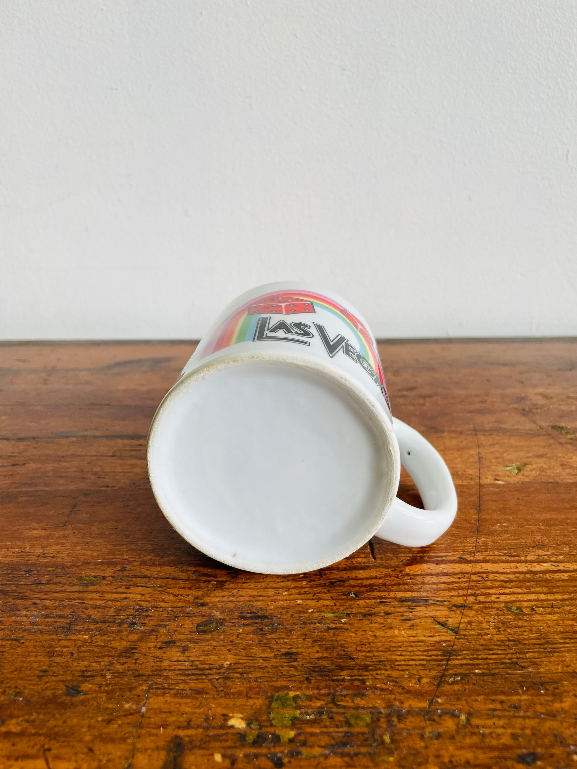 White Las Vegas Mug with Rainbow & Red Dice Graphic