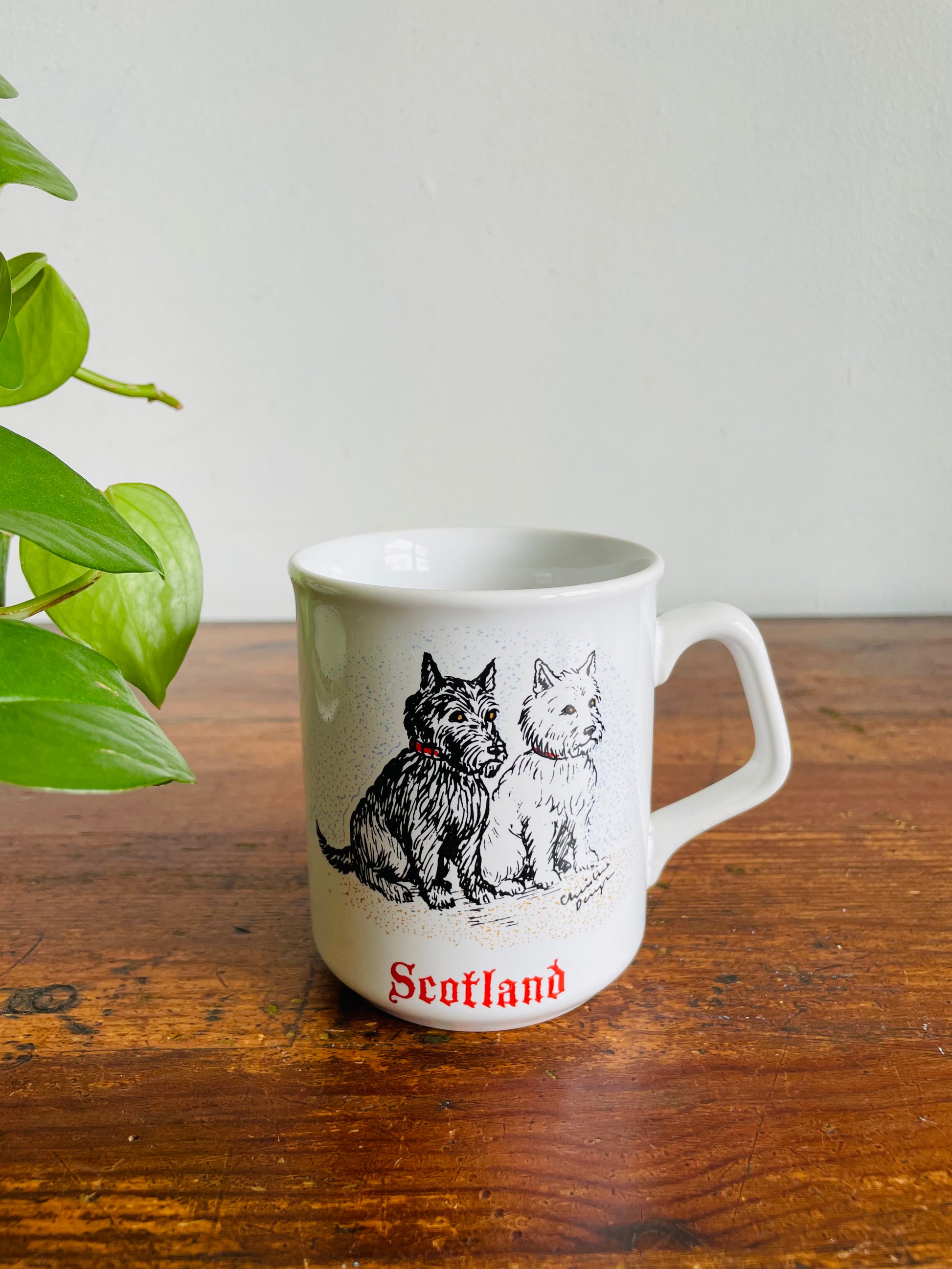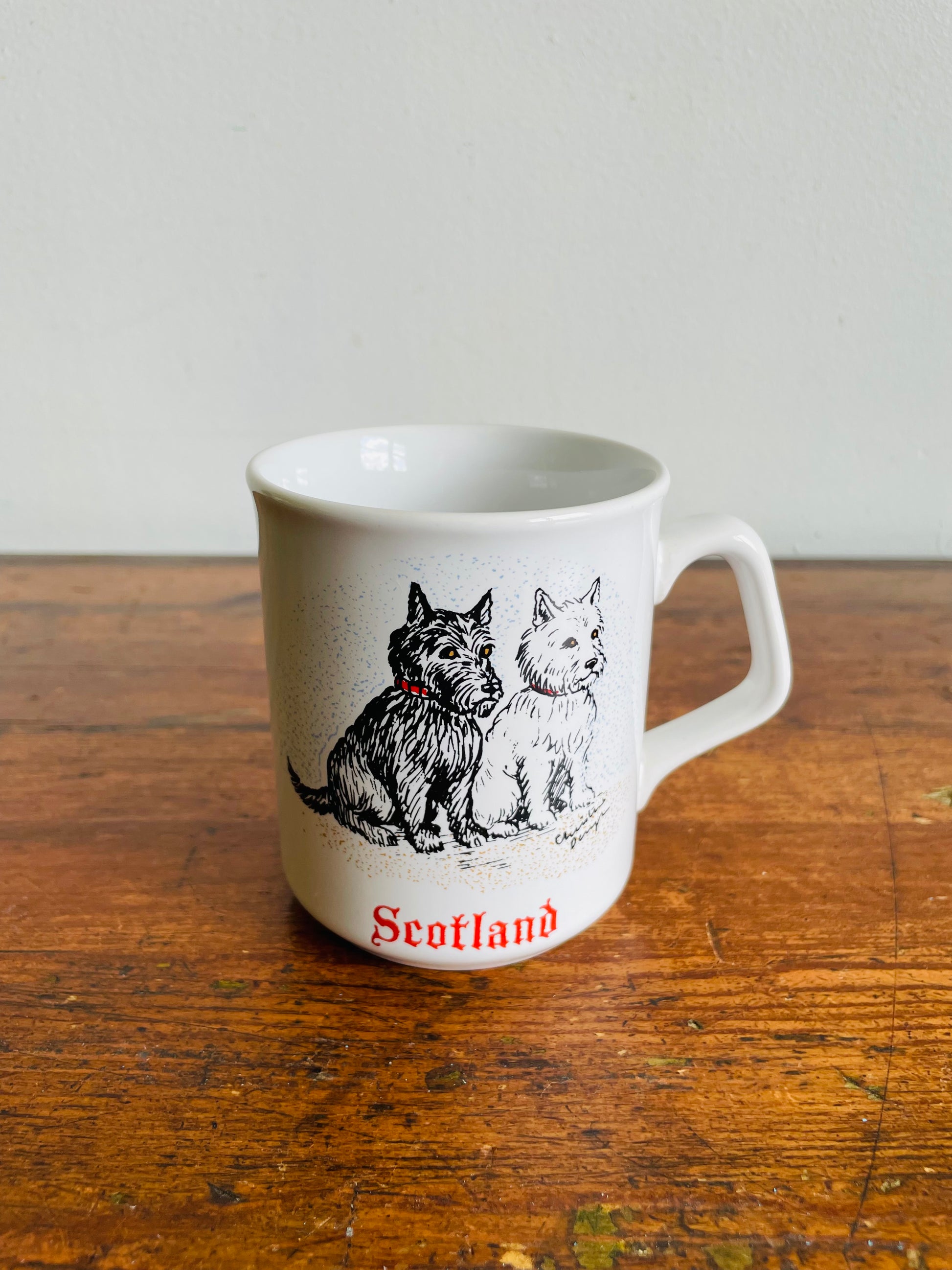 White Scotland Mug with Scottish Terrier Dogs - Tams Made in England