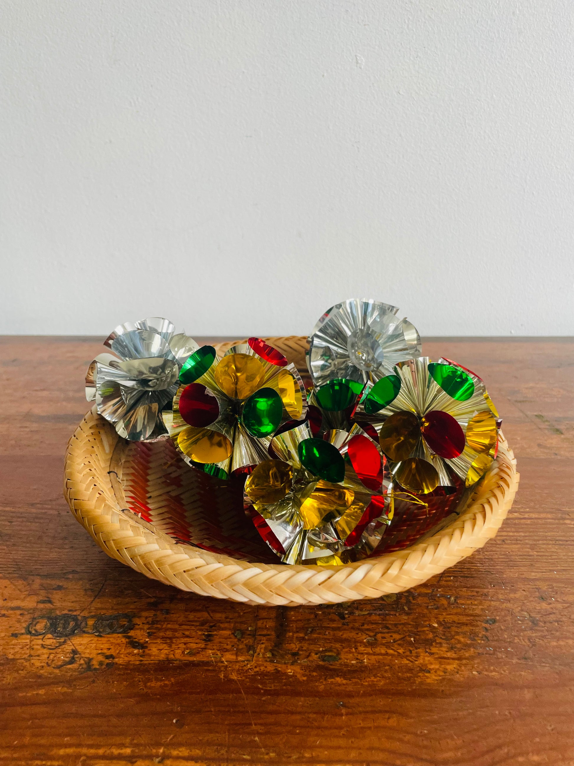 Woven Basket Bowl or Wall Hanging with Orange Design