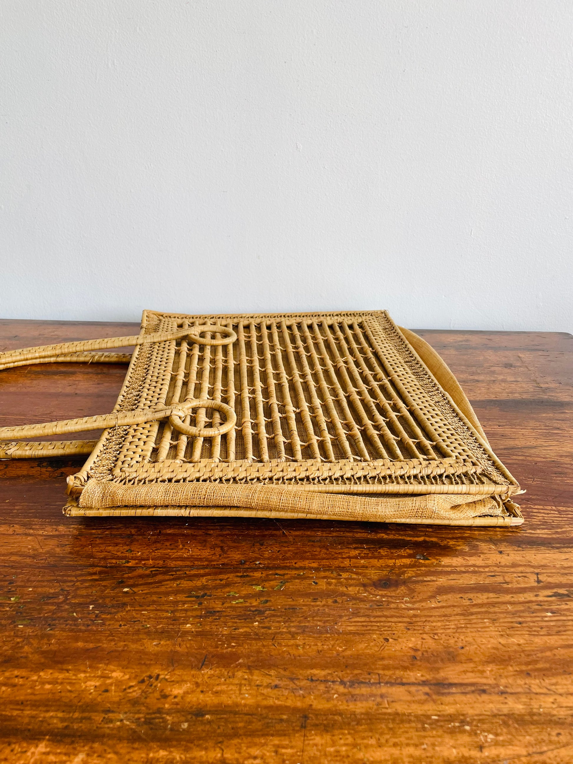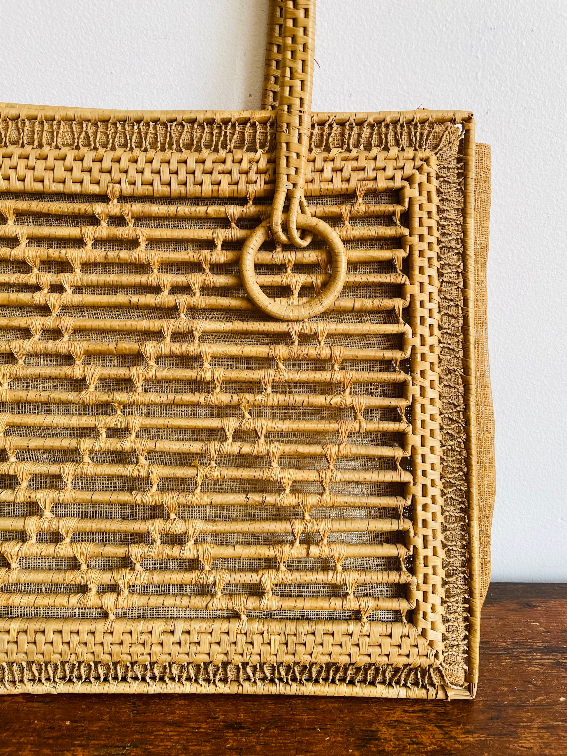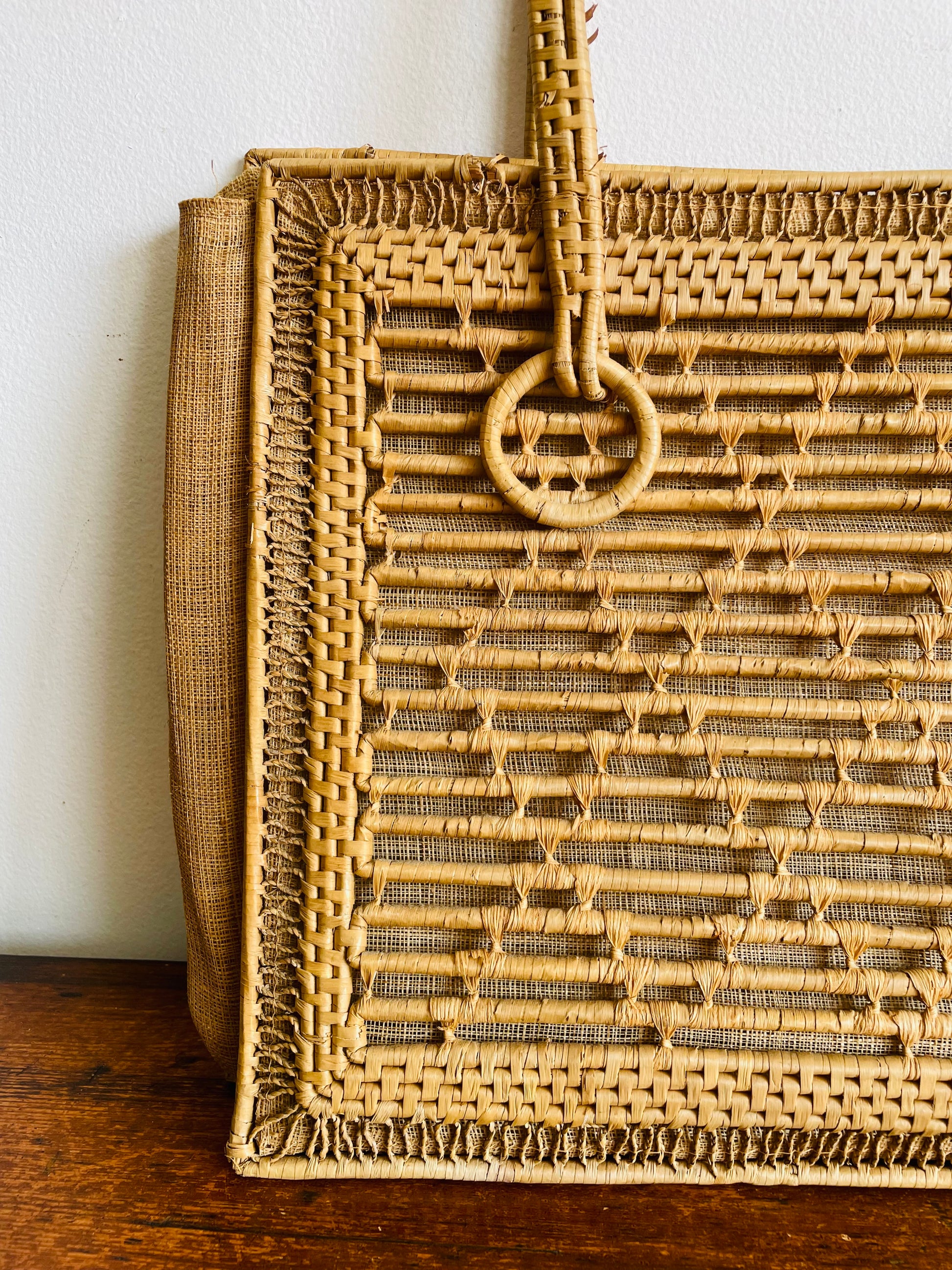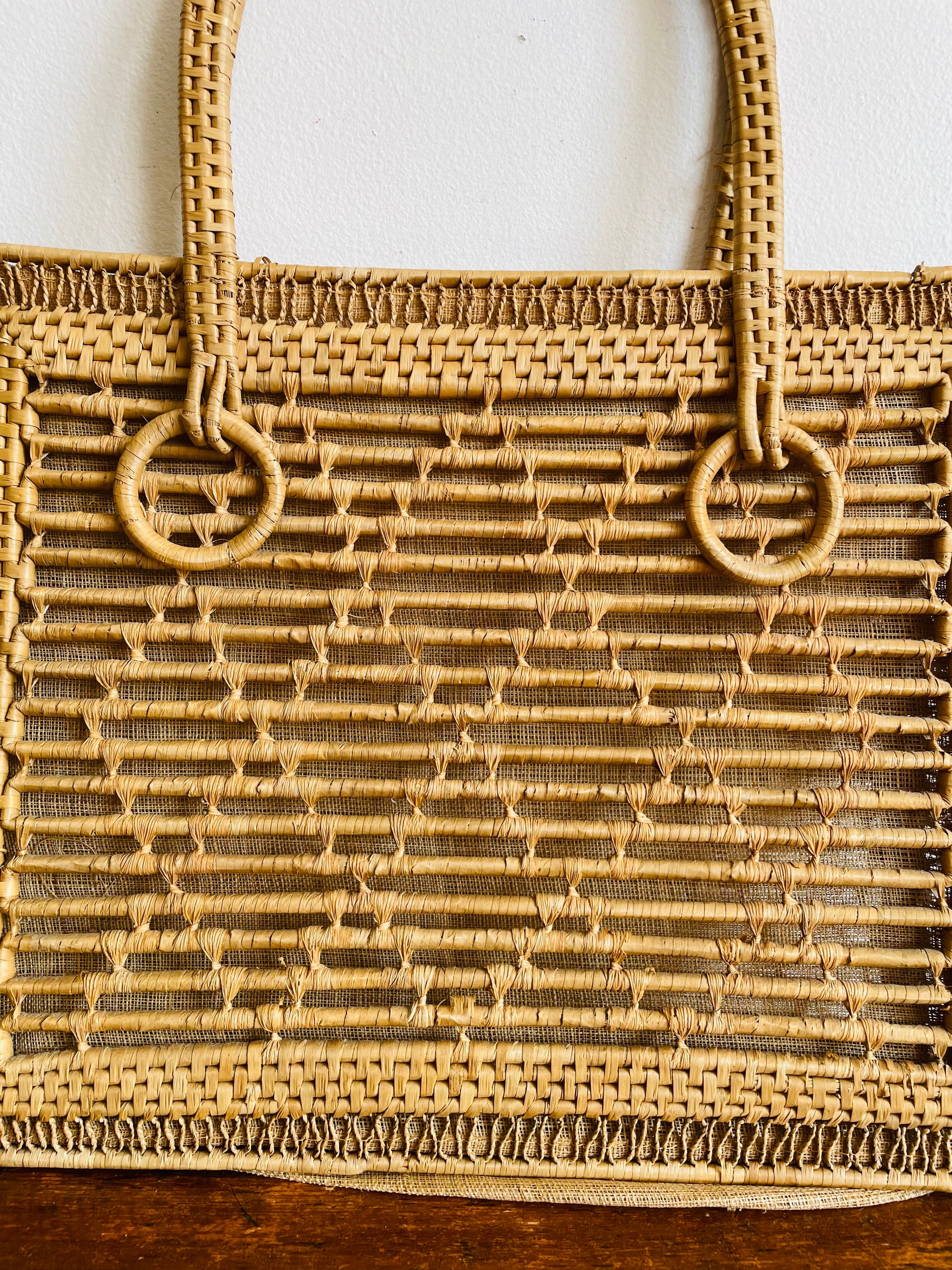 I've never seen a purse like this before! It is made from woven rattan and straw and the sides are mesh.