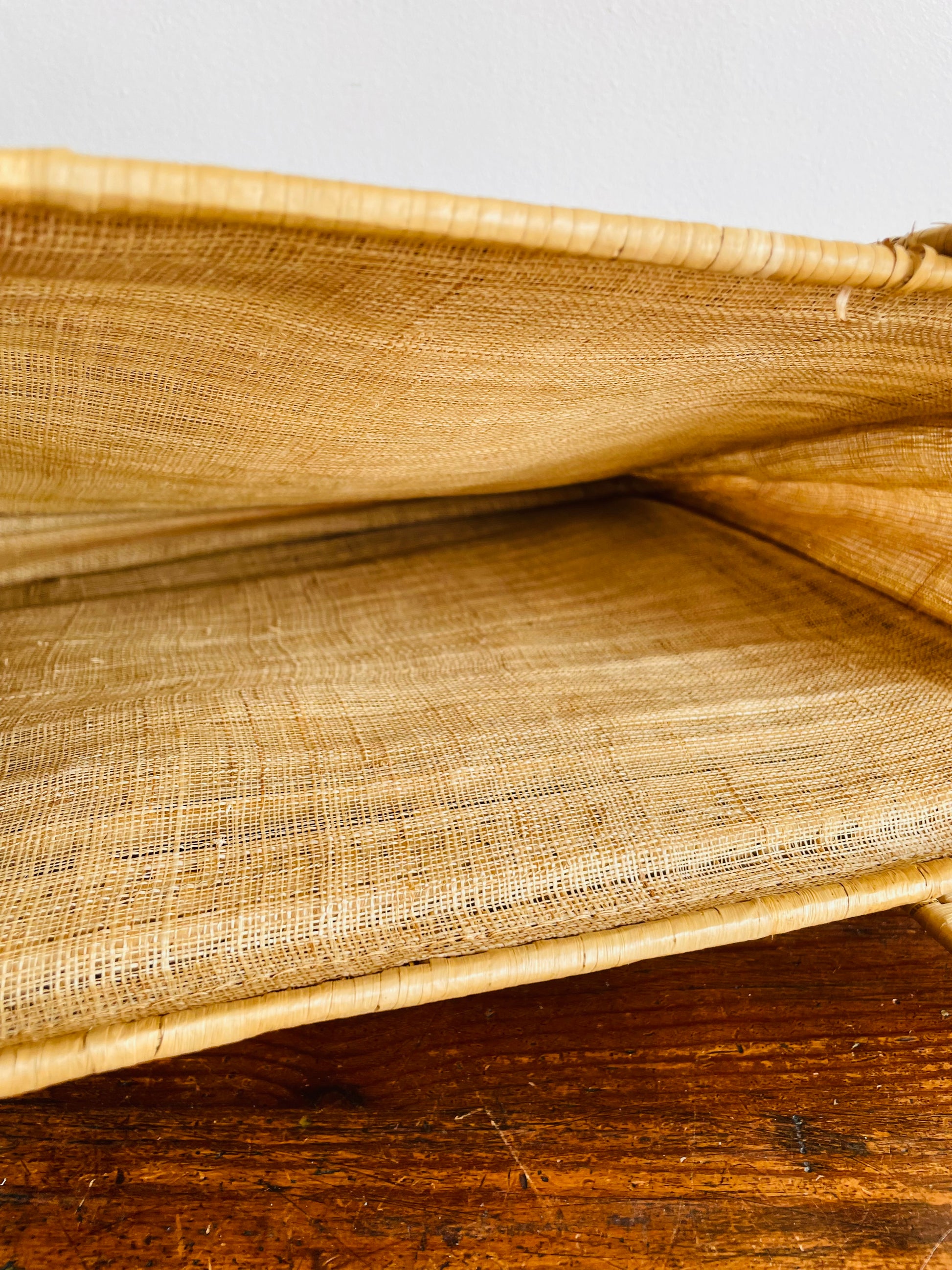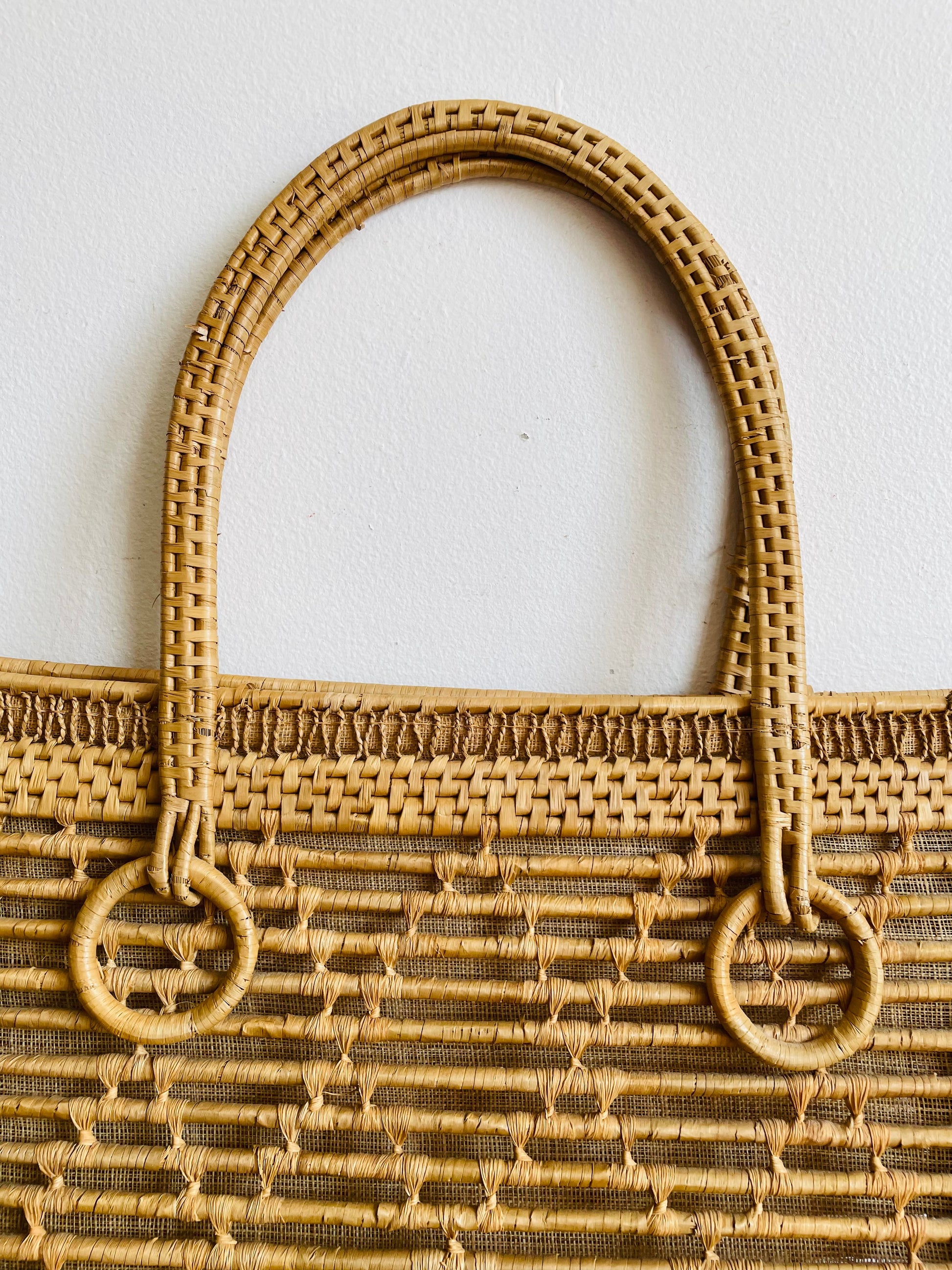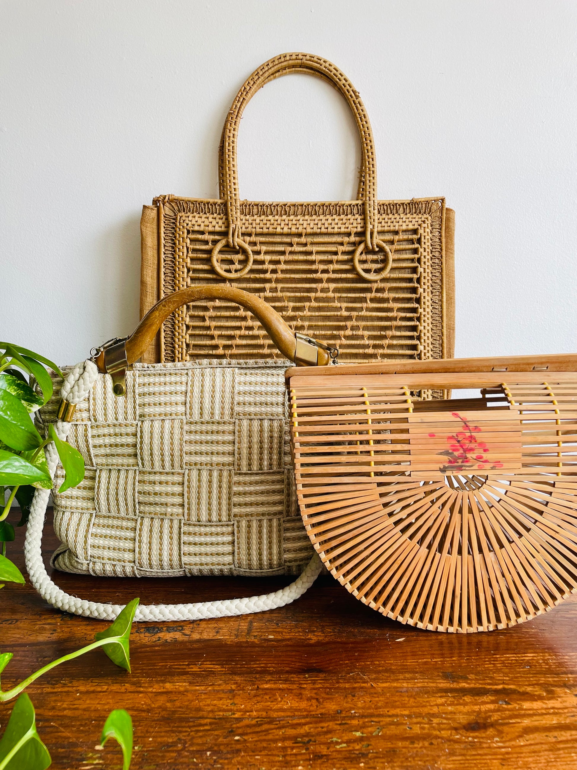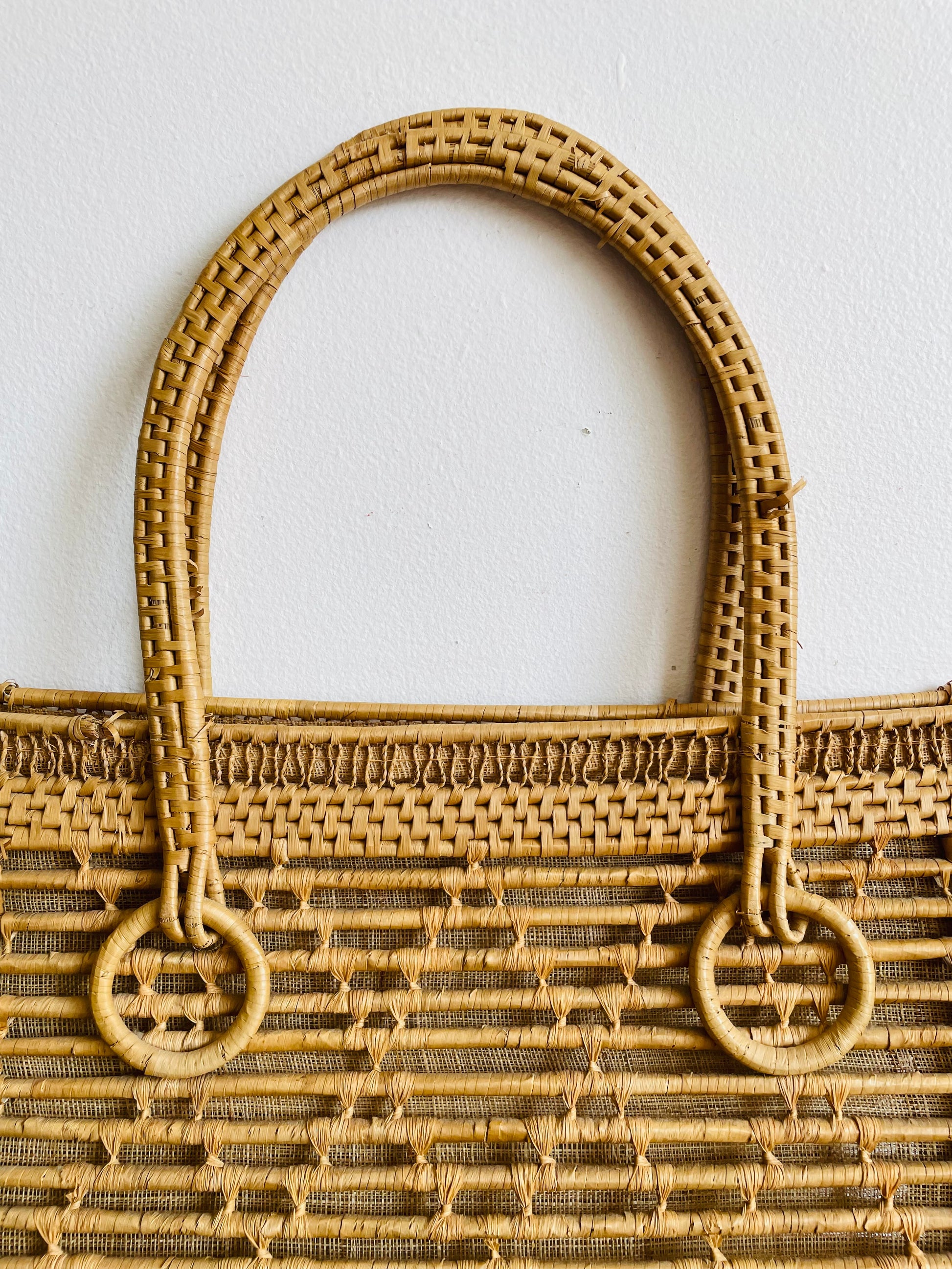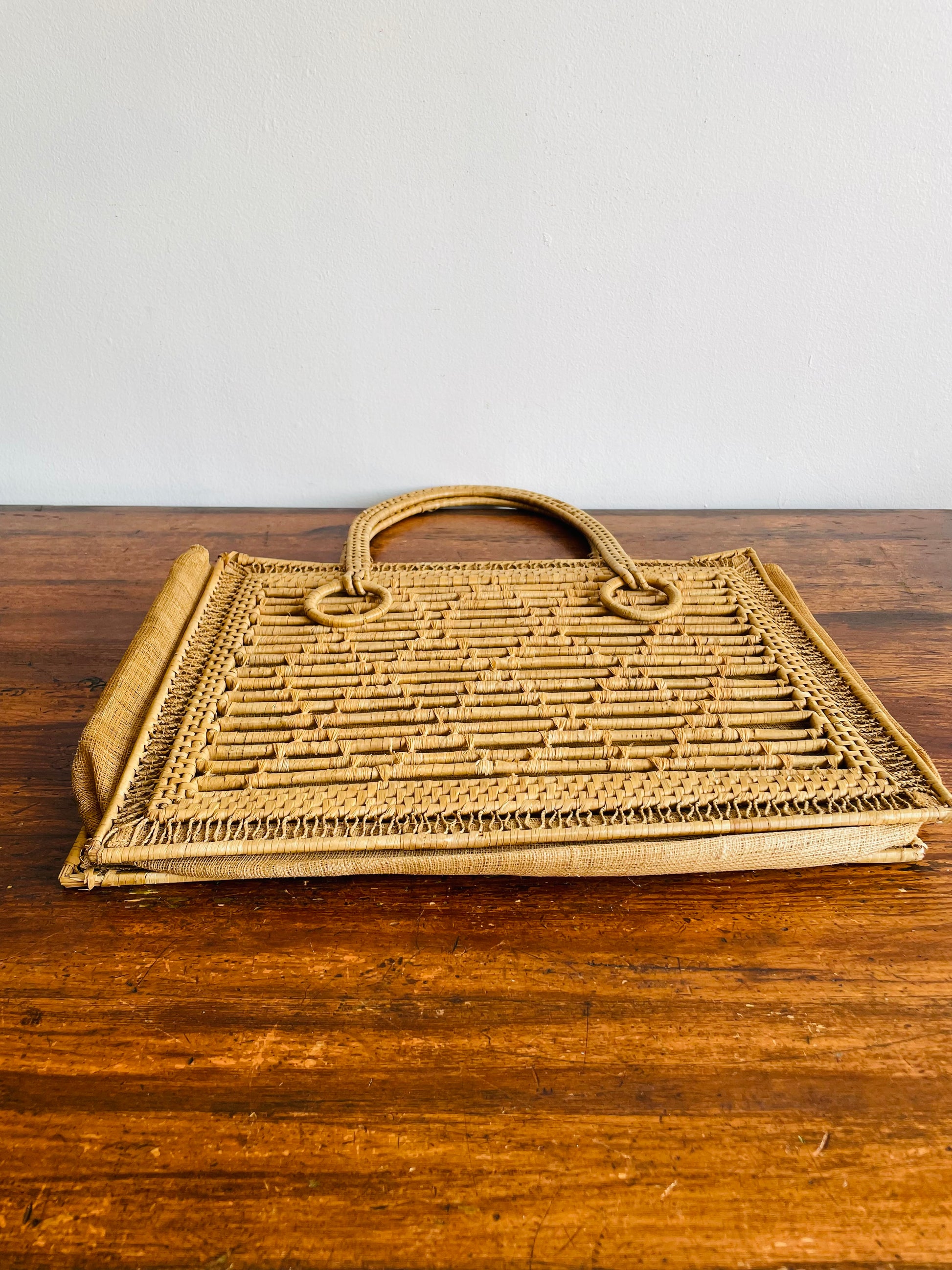 I've never seen a purse like this before! It is made from woven rattan and straw and the sides are mesh.