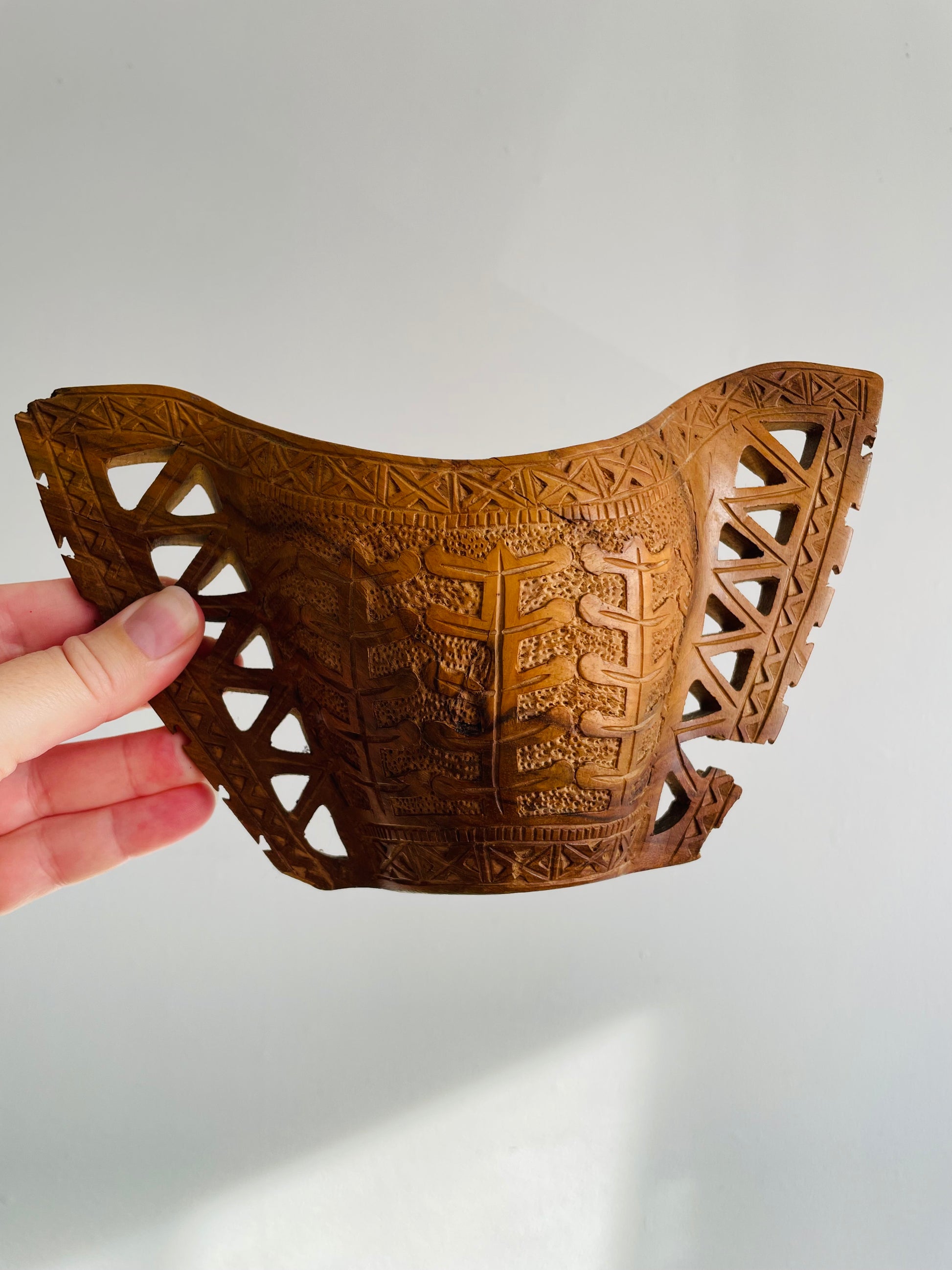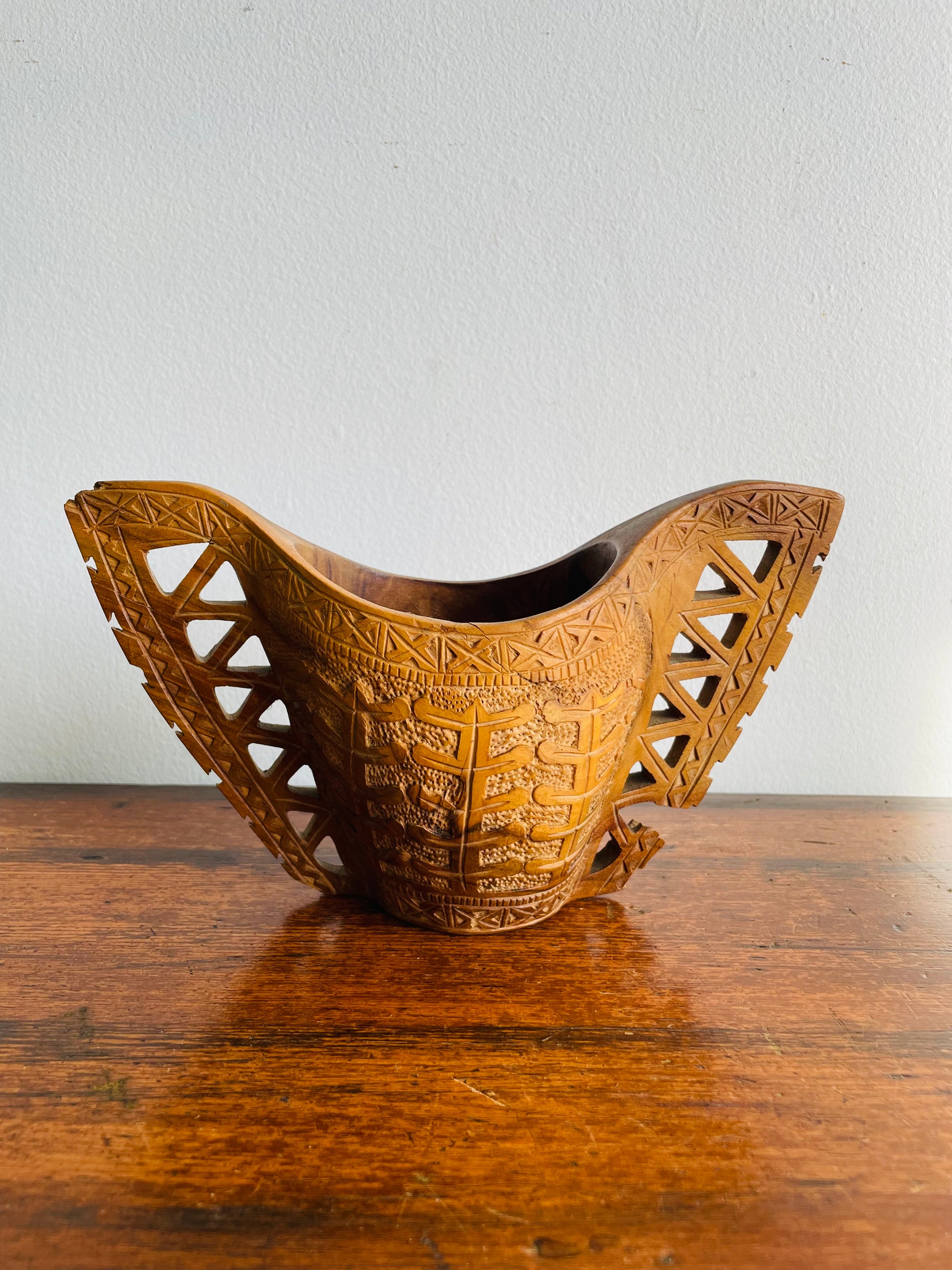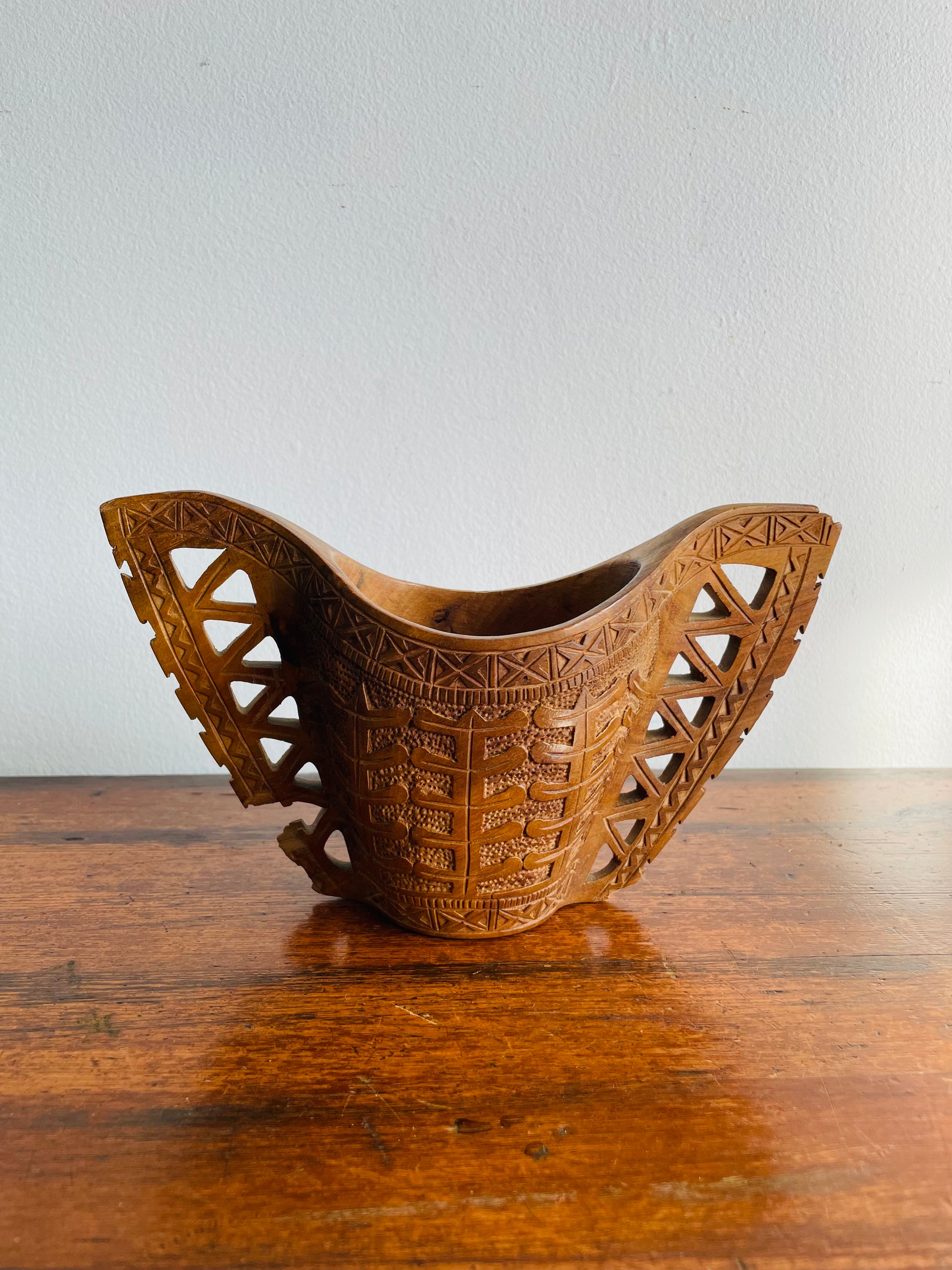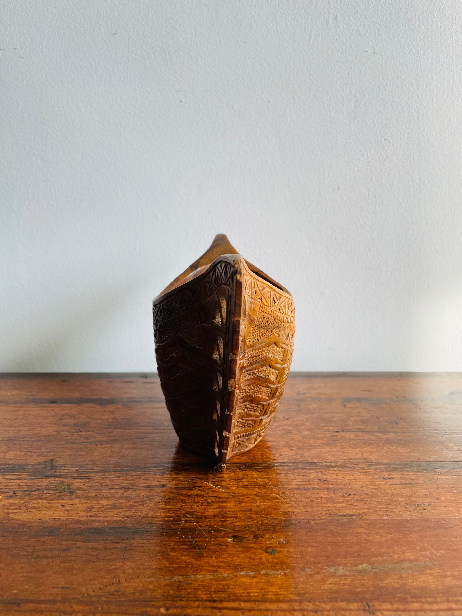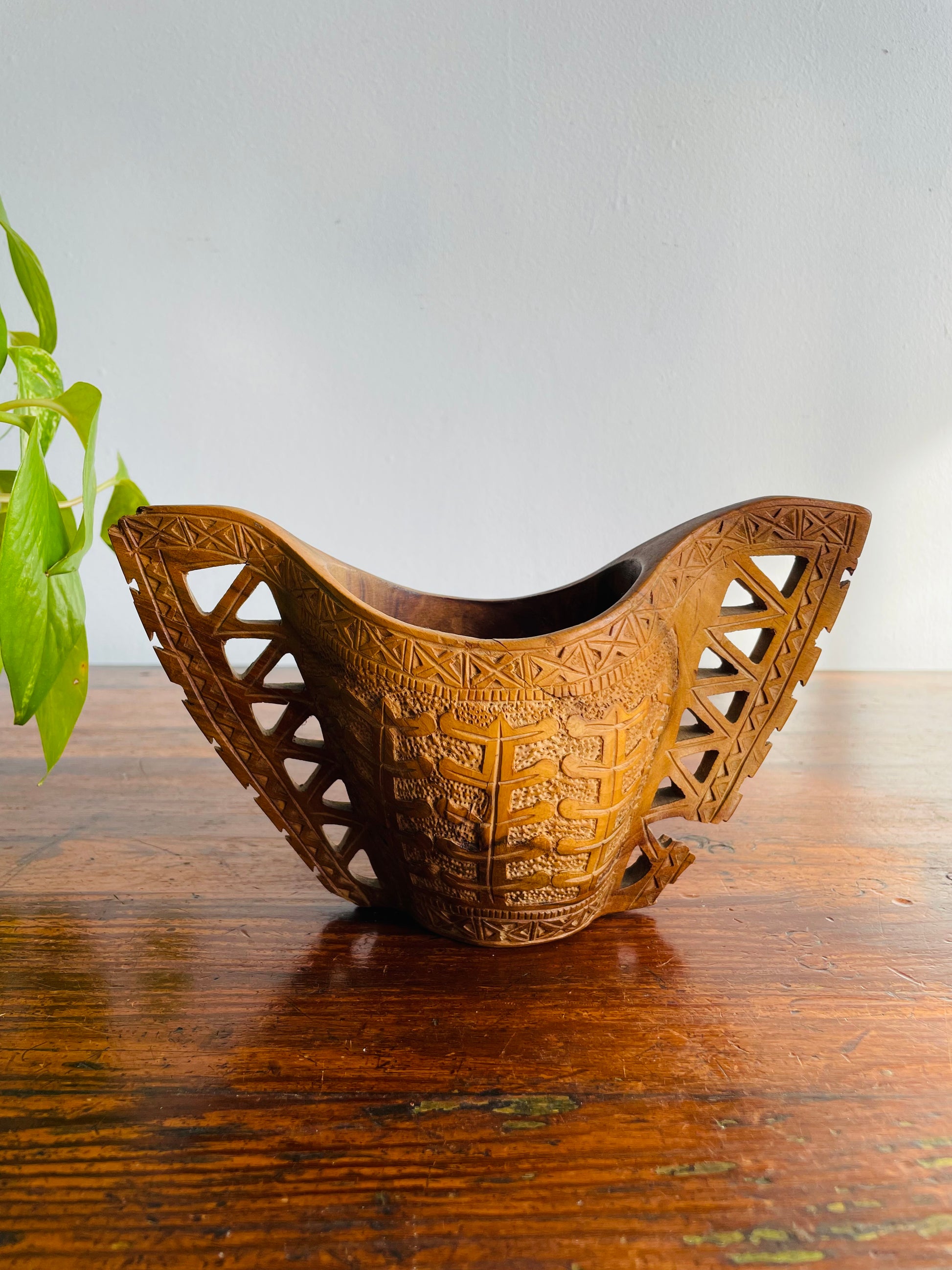 A beautiful cup that has been intricately carved from wood. Display it as-is, give it as a wedding gift, or use the centre cup part to hold a plant, pencils, etc.