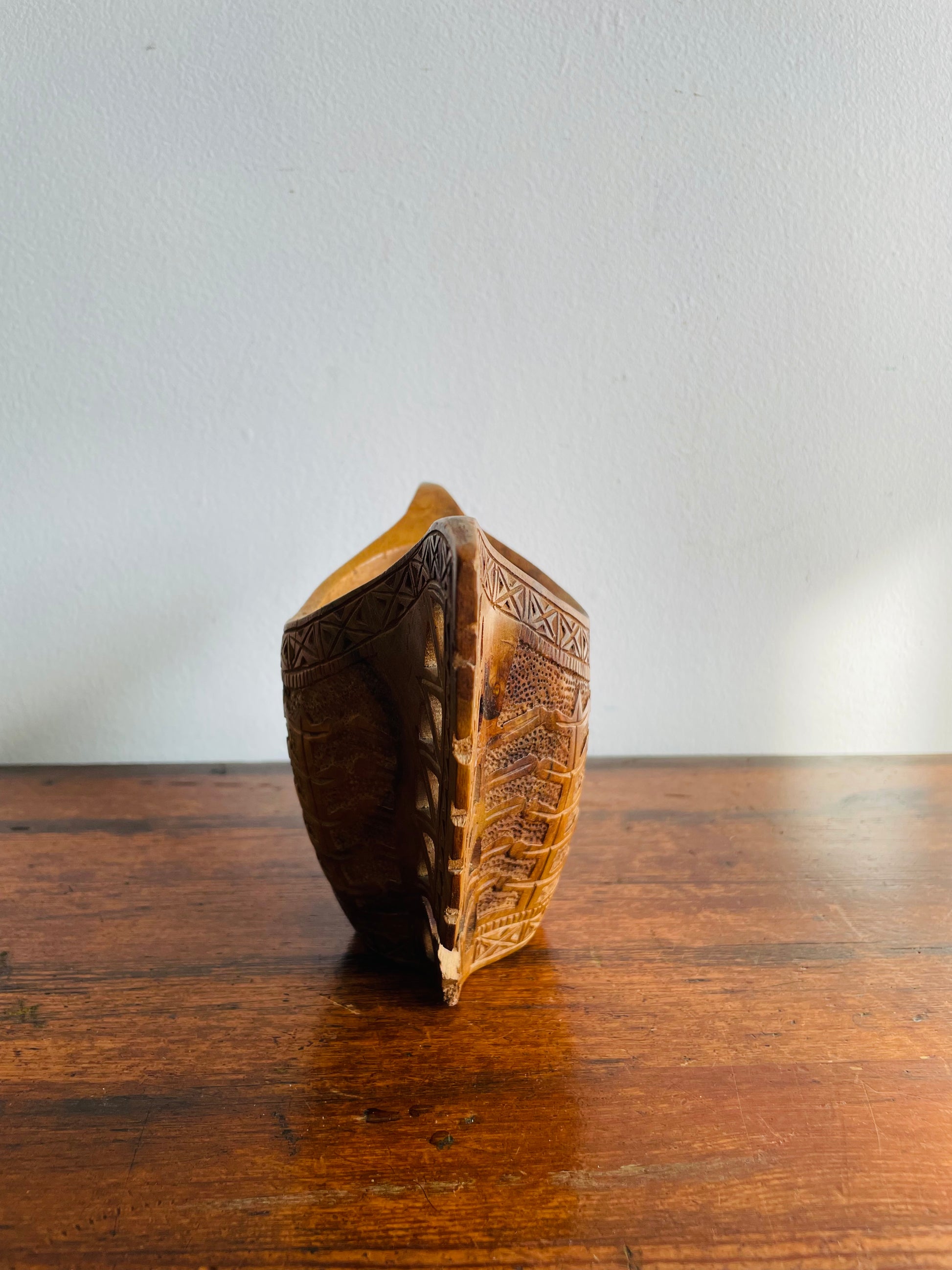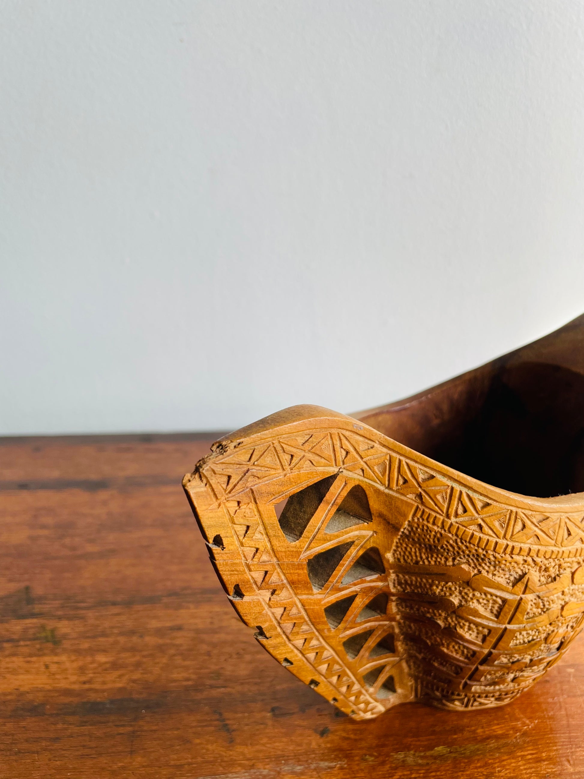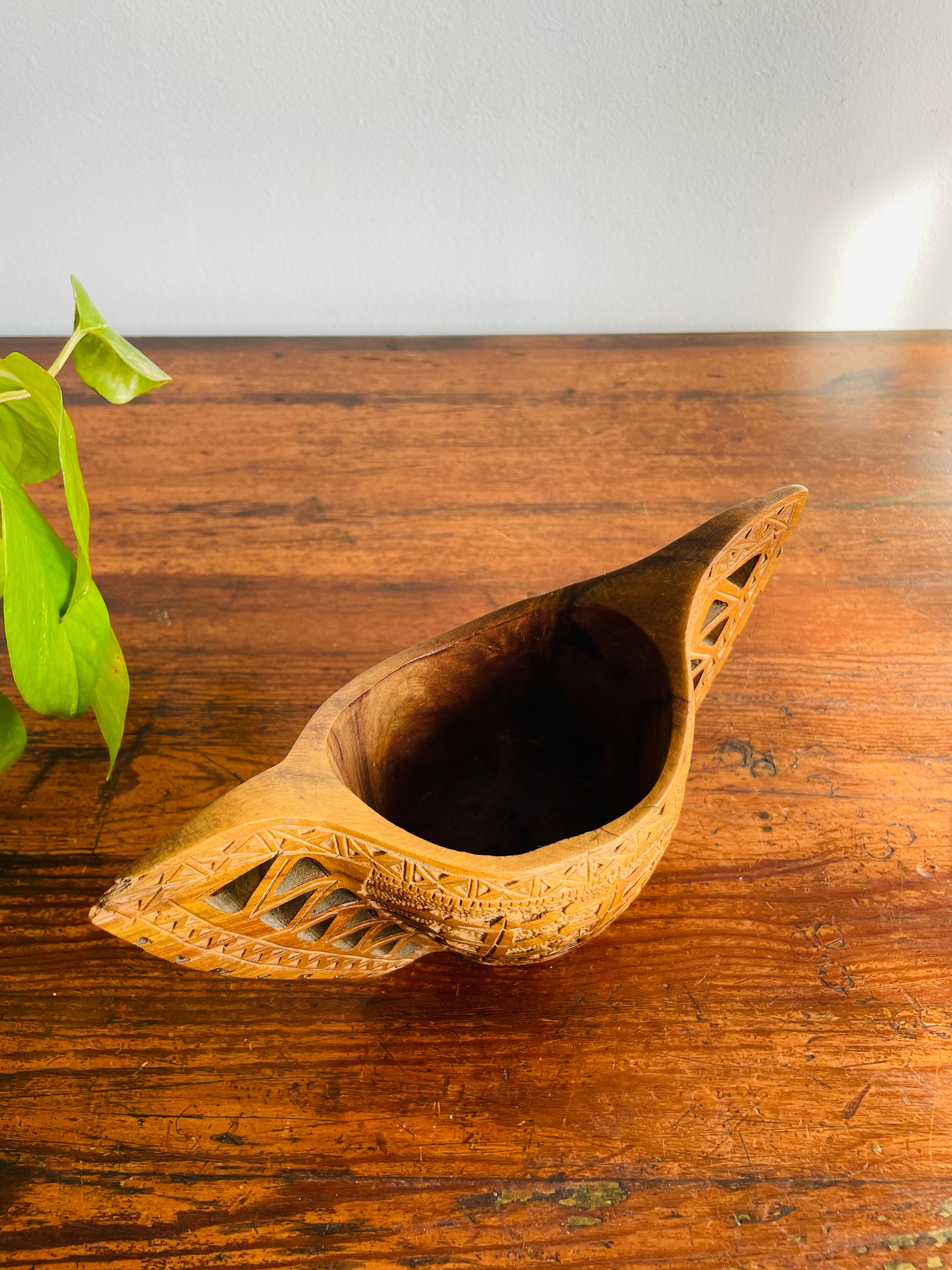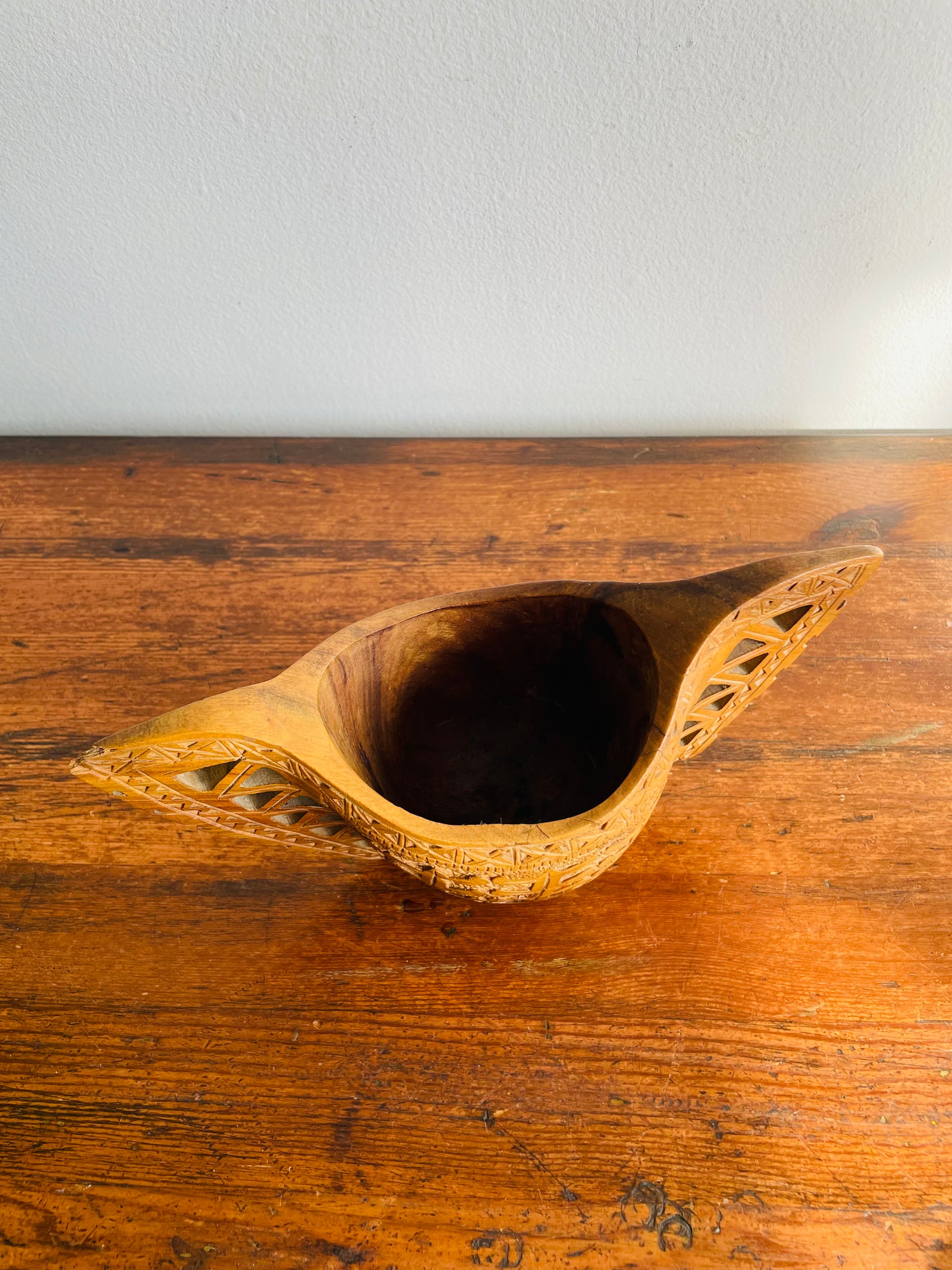 Yugoslavian Intricately Carved Wood Double Handled Wedding Cup