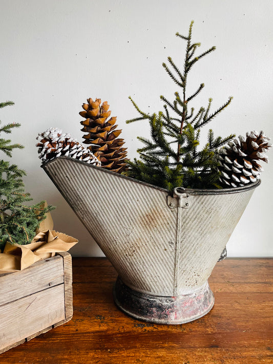 Vintage Rustic Metal Coal Scuttle Hod Bucket with Handle - Makes Great Fireplace, Porch Decor or Mini Christmas Tree Holder! - FOR SHIPPING PLEASE READ SPECIAL INSTRUCTIONS
