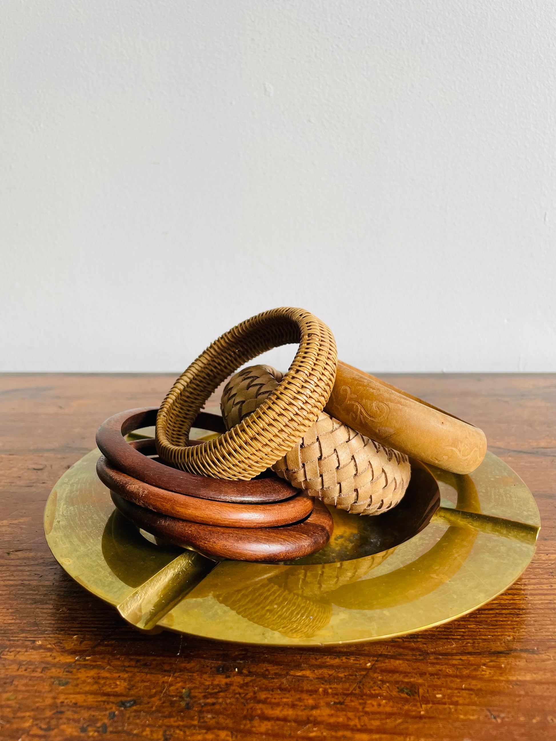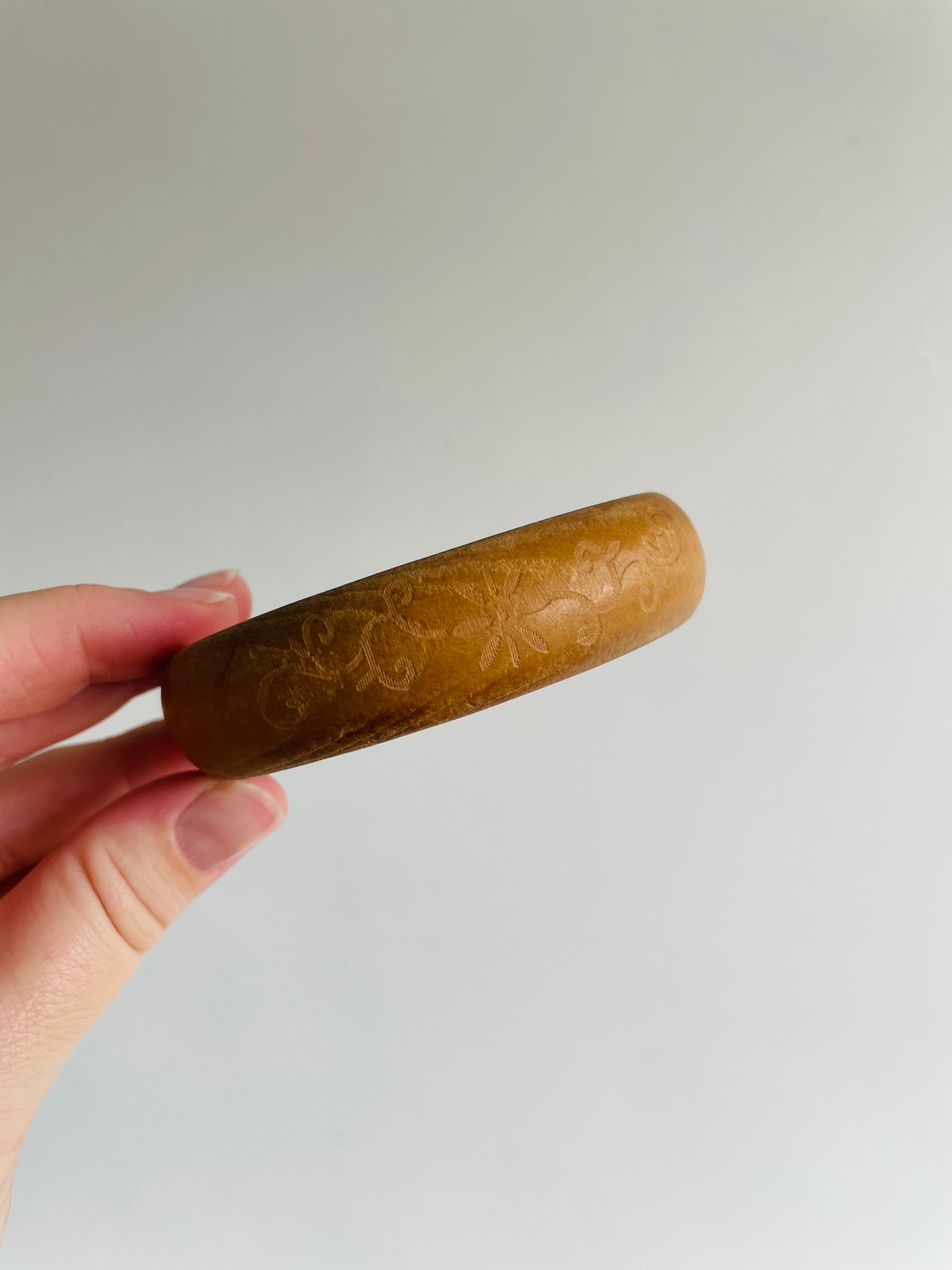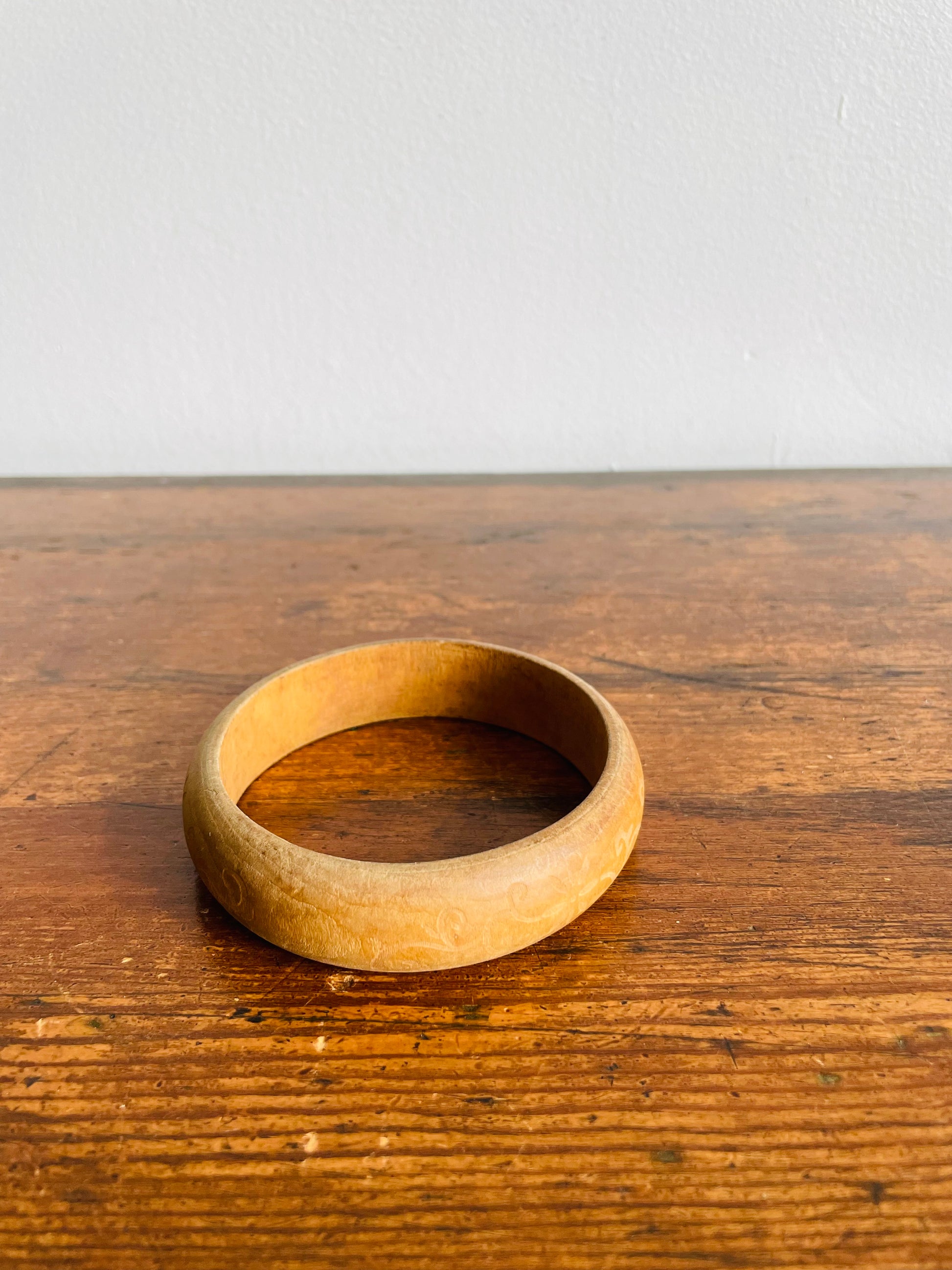 Solid Wood Bangle Bracelet with Etched Flower & Leaf Design